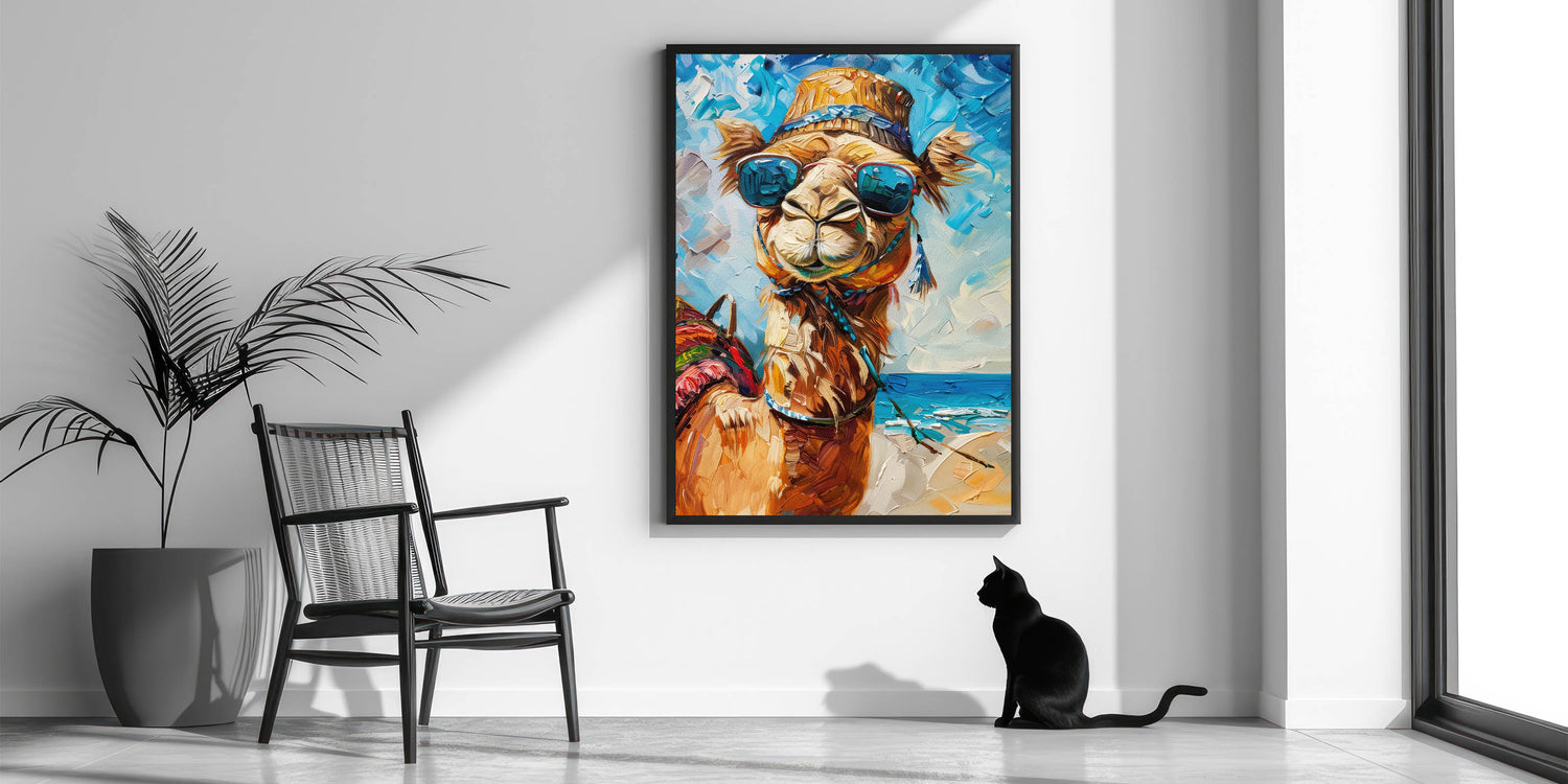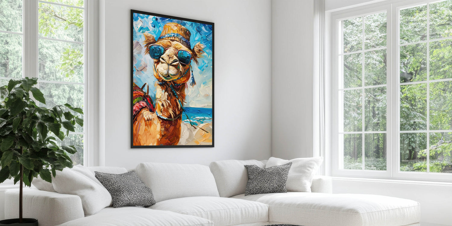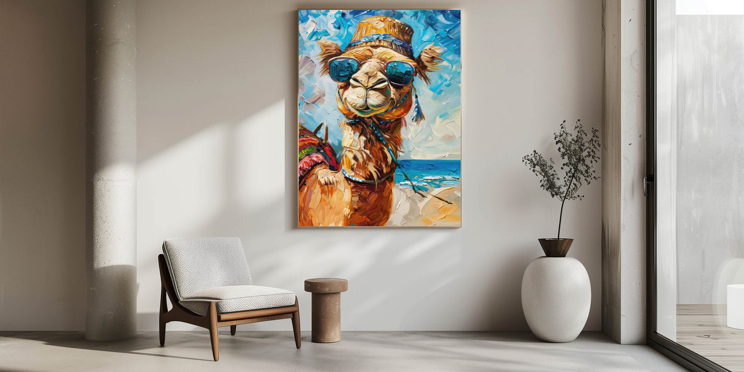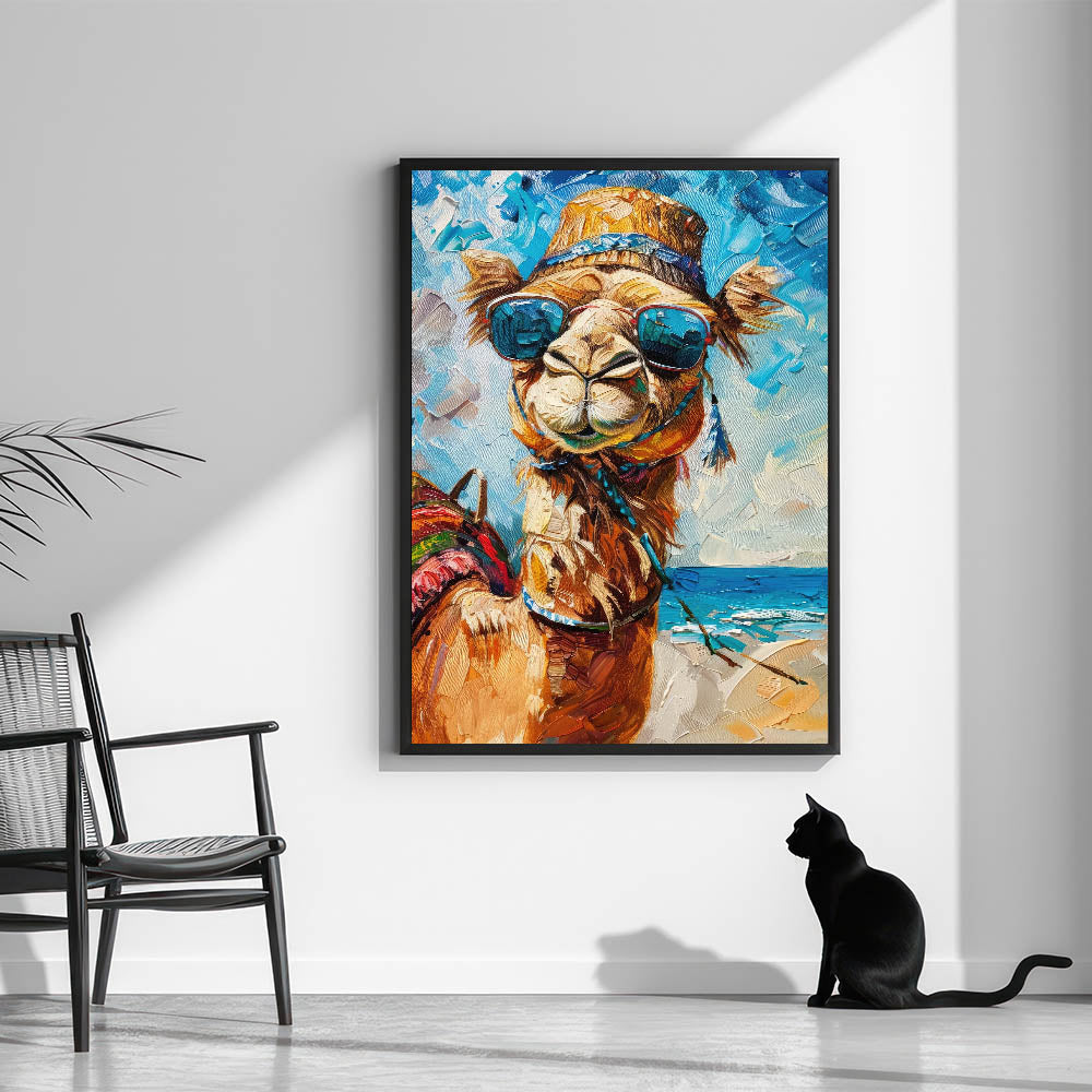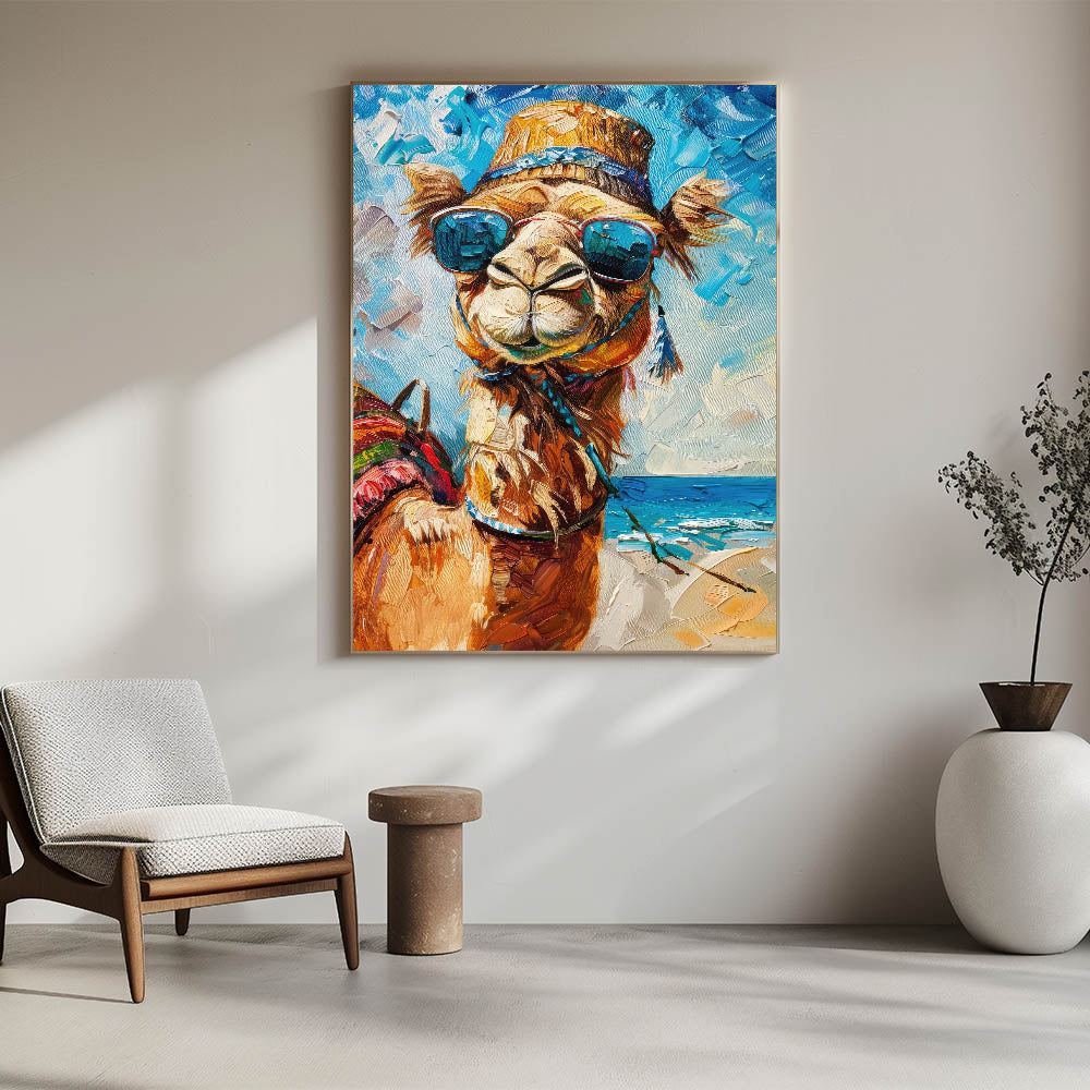 Introduce a touch of desert elegance to your space with this vibrant Camel Wall Art. This striking piece captures the playful spirit of a camel adorned in colorful accessories, set against a bright and lively backdrop. Perfect for adding an exotic flair to your home or office, this artwork is more than just a decorative piece—it’s a statement of style and cultural richness.