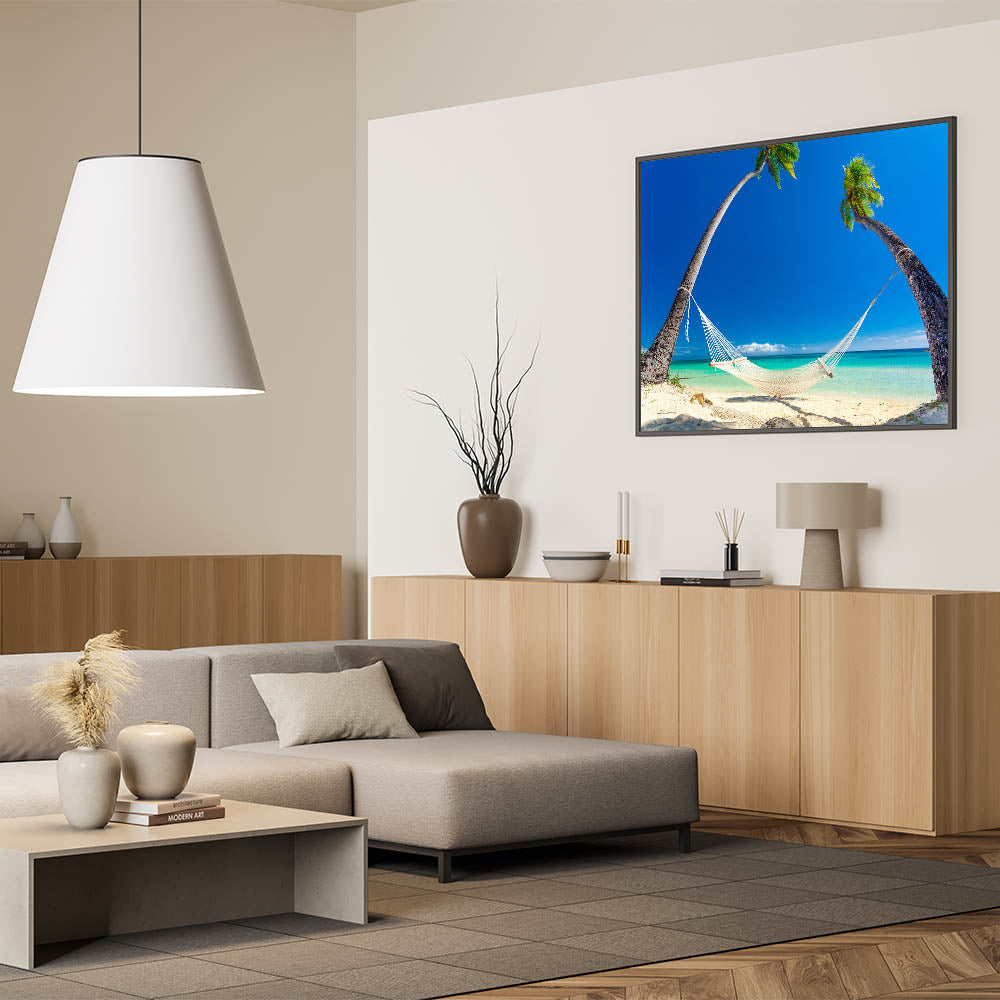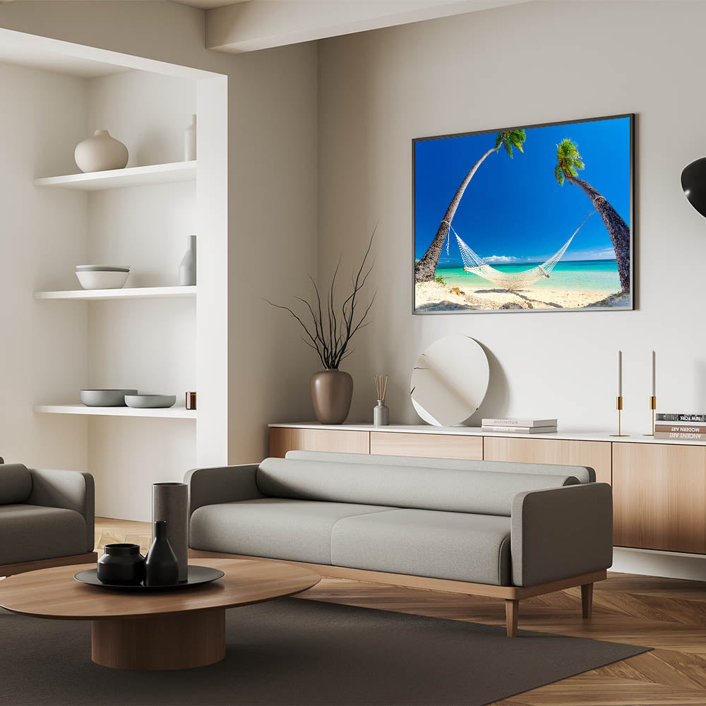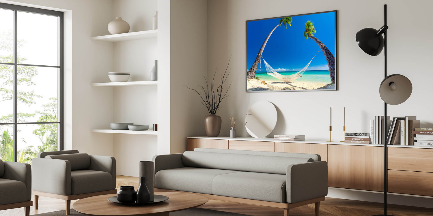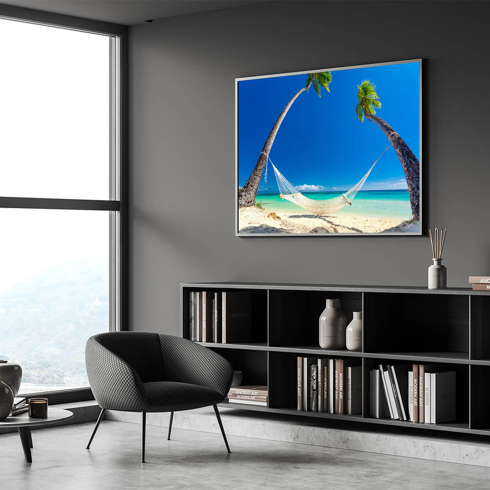 "Serene Hammock Beach Art" is perfect for those who dream of lazy days by the sea, bringing the peacefulness of Fiji's shores right into your home or office.