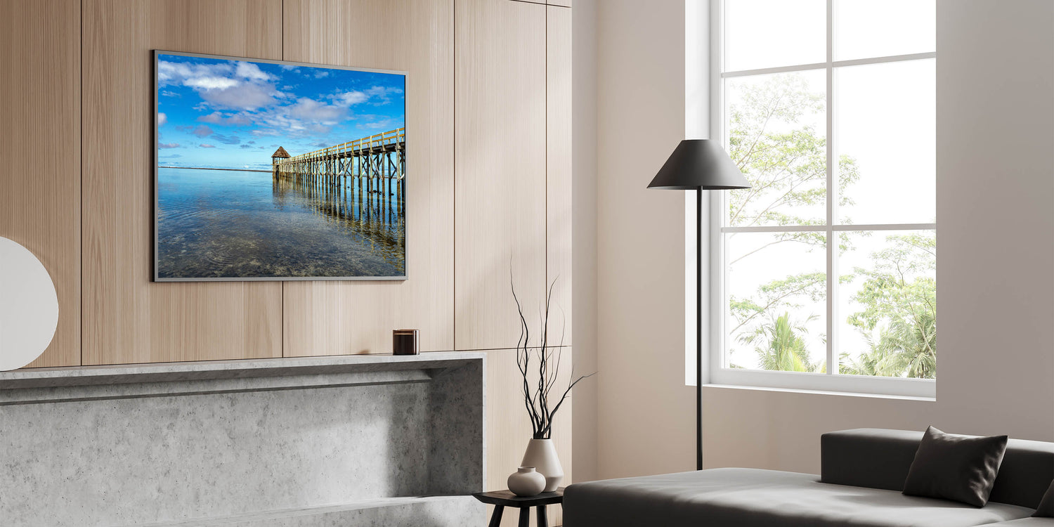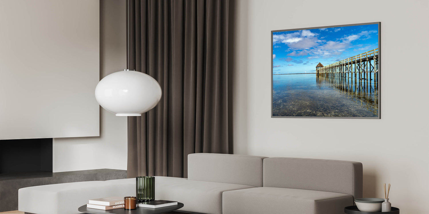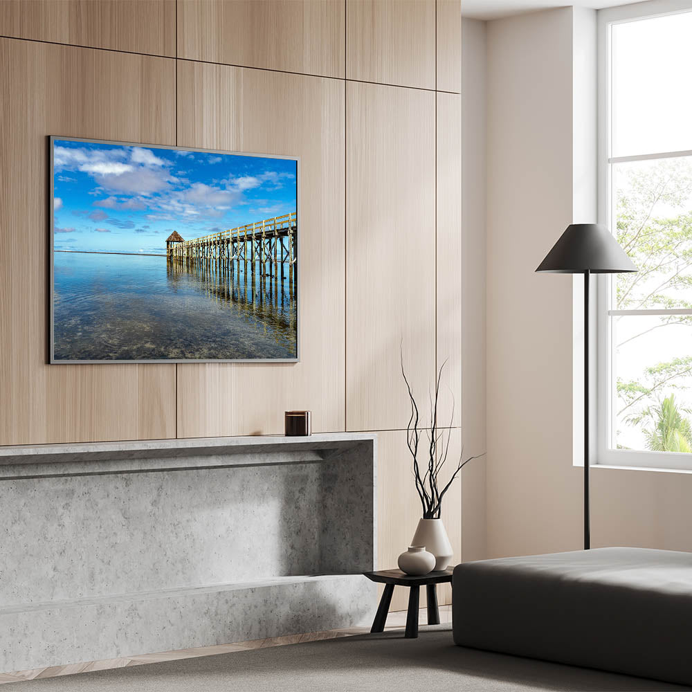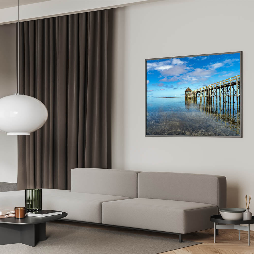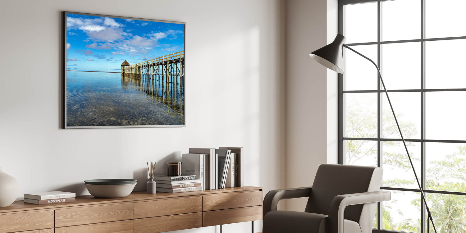 "Tranquil Pier Seascape Art" offers a window to the serene landscapes of Fiji, providing a tranquil escape in any room.