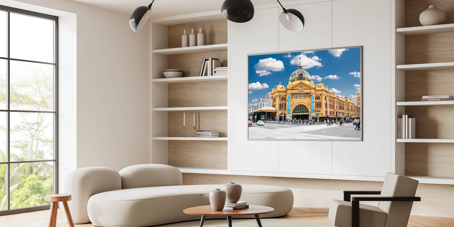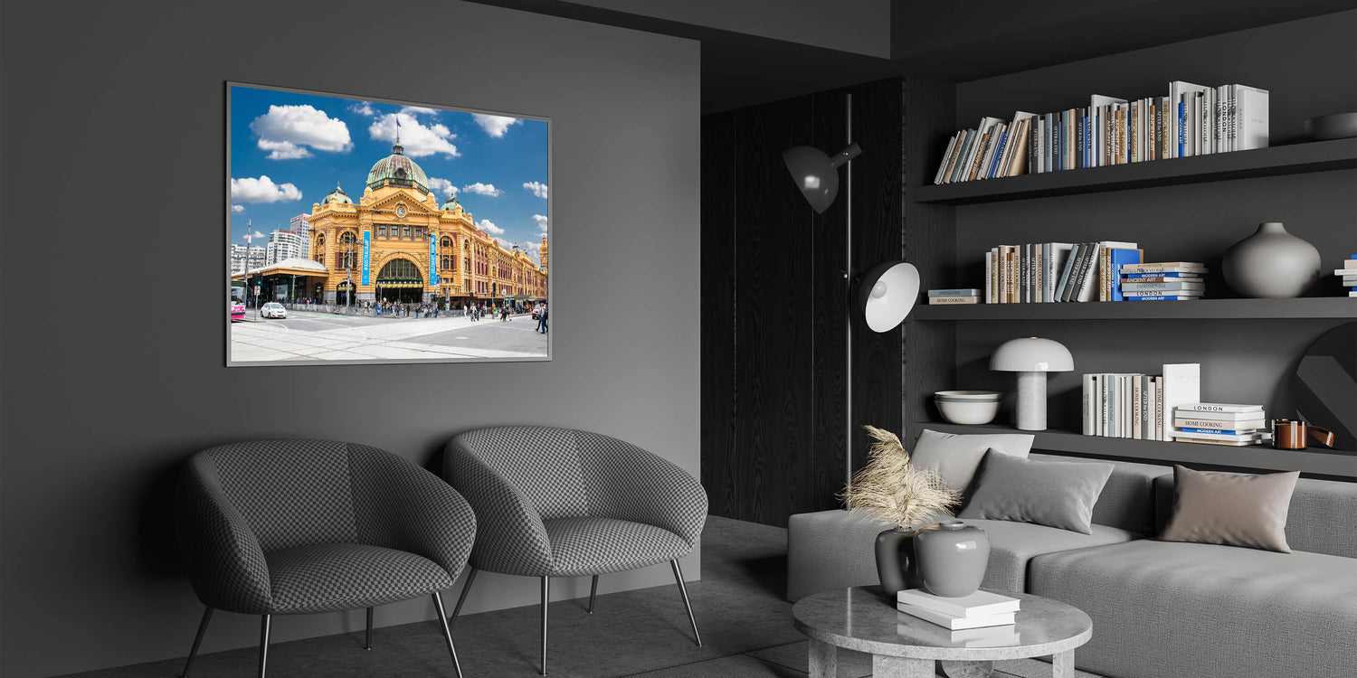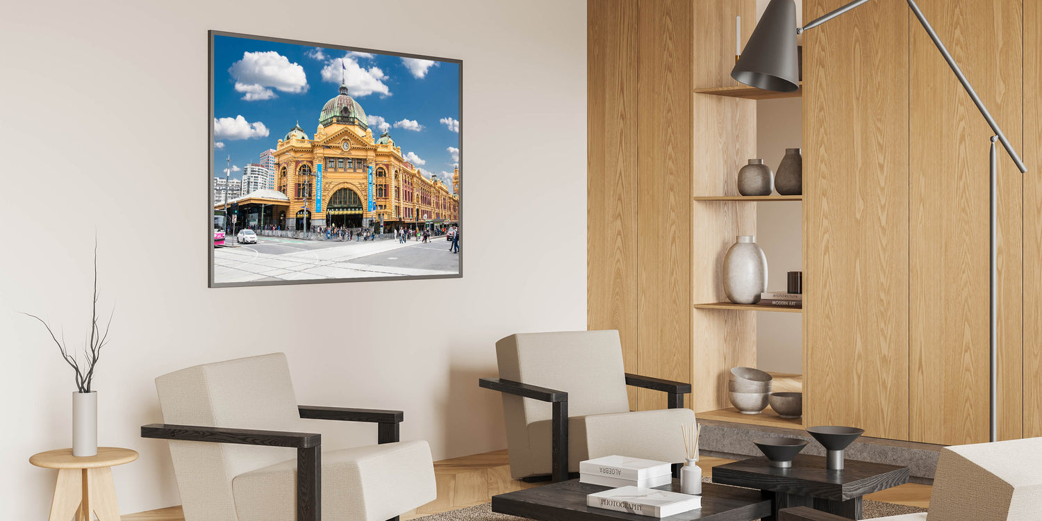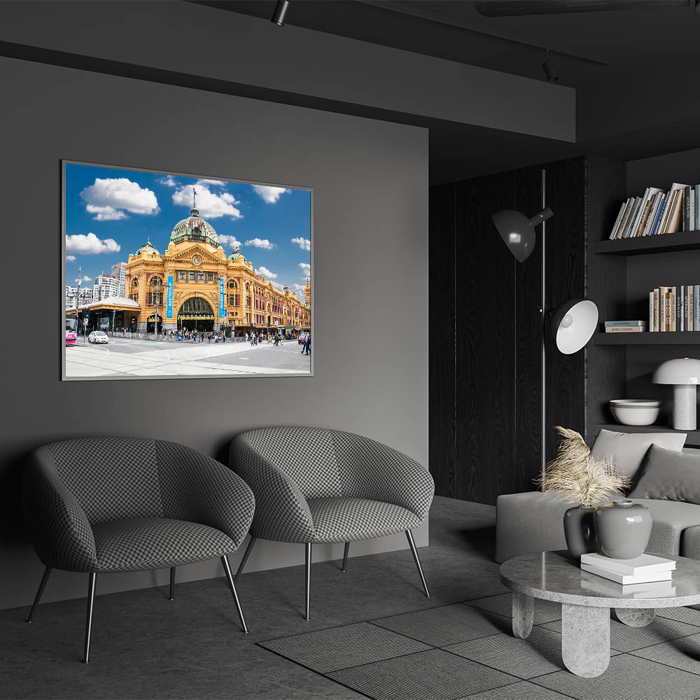 - High-quality print highlighting the intricate architecture of Flinders Street Station