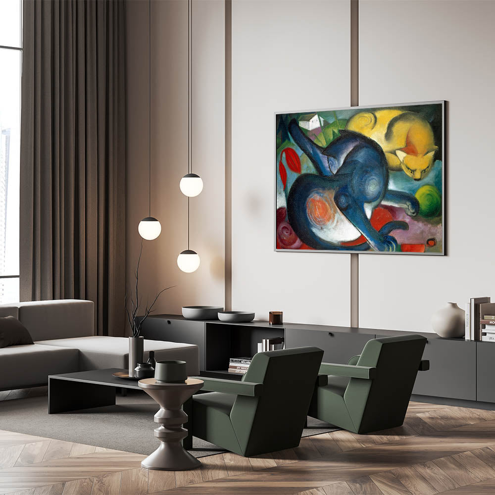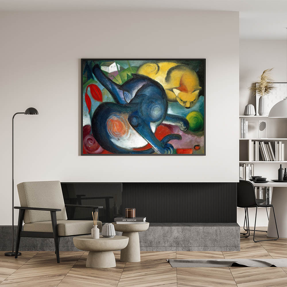 Franz Marc Wall Art - Modernist Expressionist Cats with Blue Rider Style