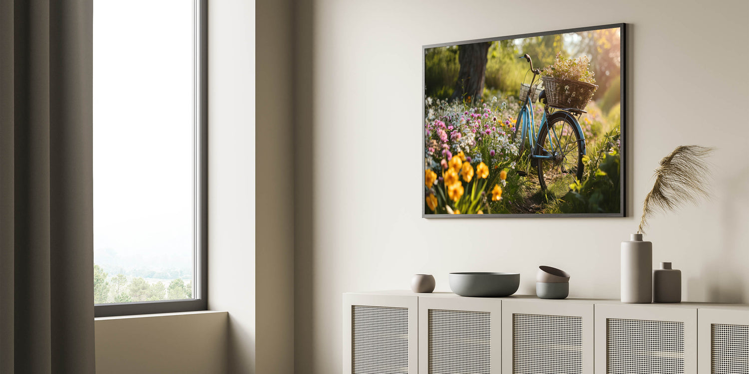 This piece is part of our exclusive bicycle art collection, designed for those who appreciate the harmony of nature and the simple pleasures of cycling. Whether you’re a garden lover or simply enjoy vibrant, natural decor, this artwork will bring a sense of life and freshness to your home. Explore more cycling decor ideas and let this piece inspire a colorful and joyful transformation in your space.