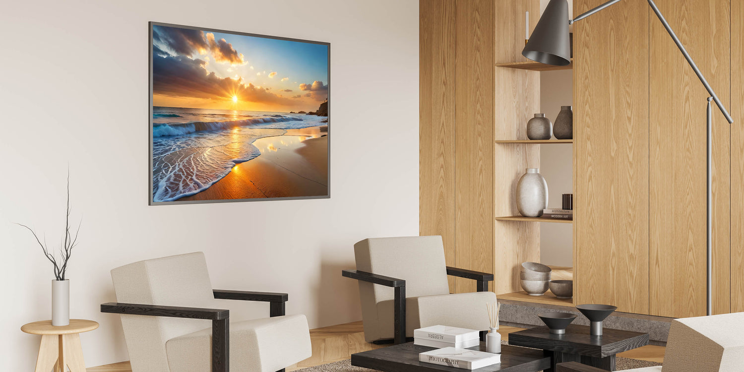 - Vivid, high-definition colors that capture the beauty of a golden sunset over the ocean.