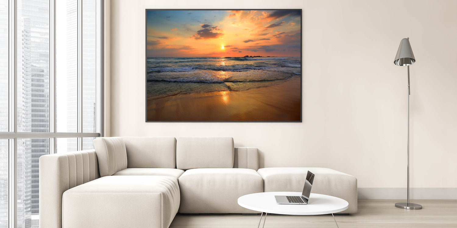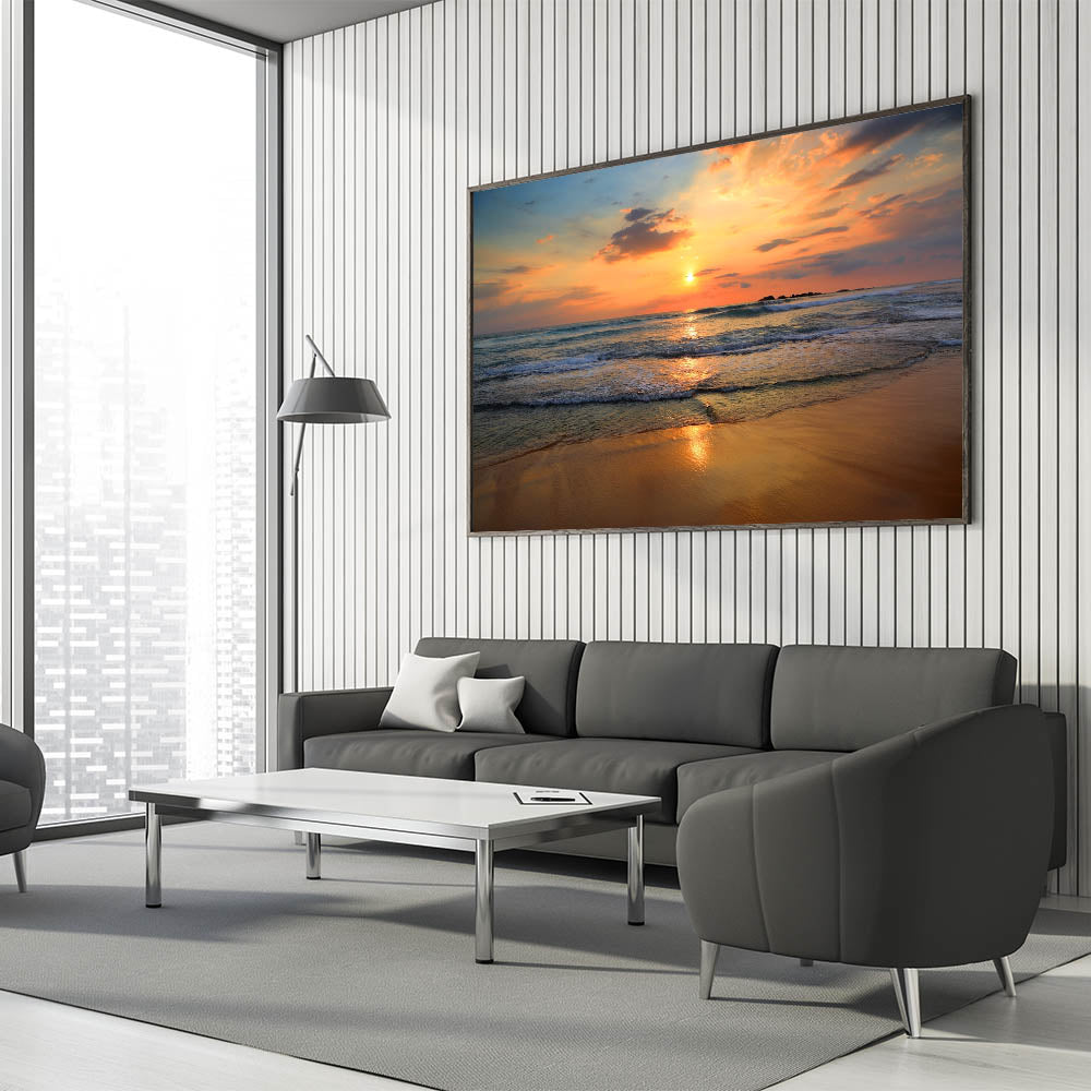 Elevate your interior with this beautiful piece of oceanfront artwork, perfect for those who love the calming effects of a sunset. Whether you’re creating a beach-themed room or simply want to bring the soothing vibes of the ocean into your space, this artwork is the ideal choice.
