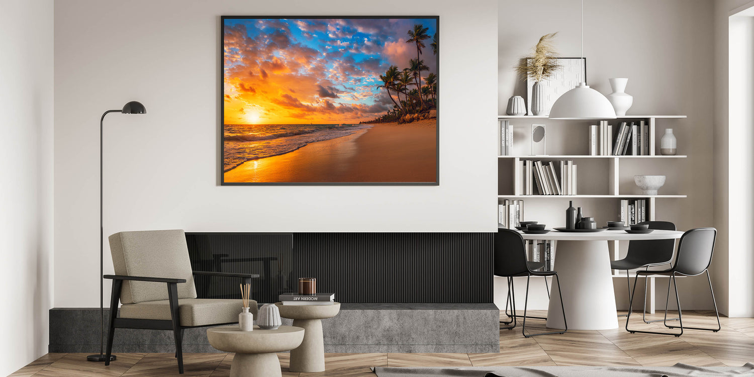 - Versatile Decoration: Ideal for beach-themed homes, tropical retreats, or any interior looking to capture the beauty of a sunset at the shore.