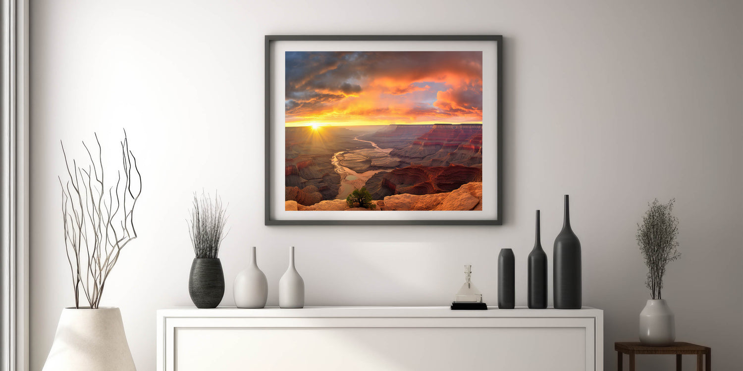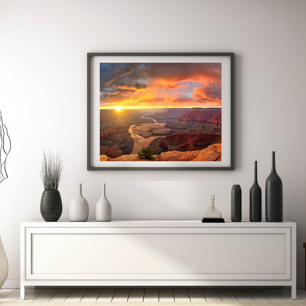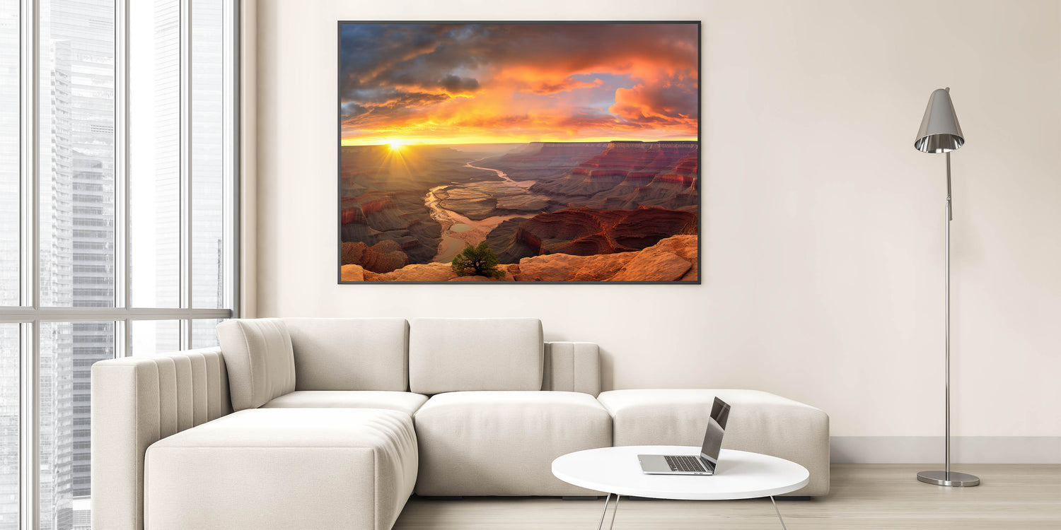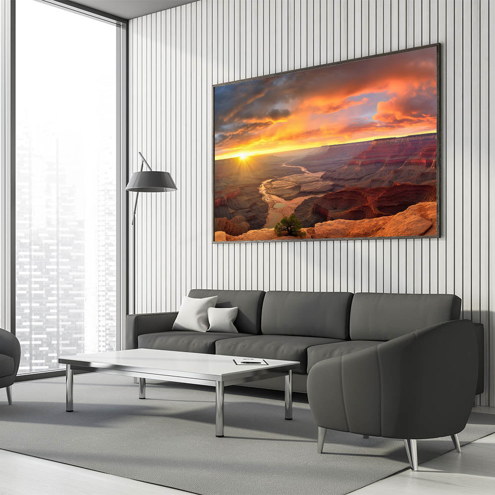 Whether you’re a nature lover or an art enthusiast, this Grand Canyon Sunrise artwork is designed to elevate your living space. Its detailed design and high-resolution quality make it a striking focal point in any room. Bring the grandeur of the great outdoors into your home with this exquisite piece of canyon art decor.