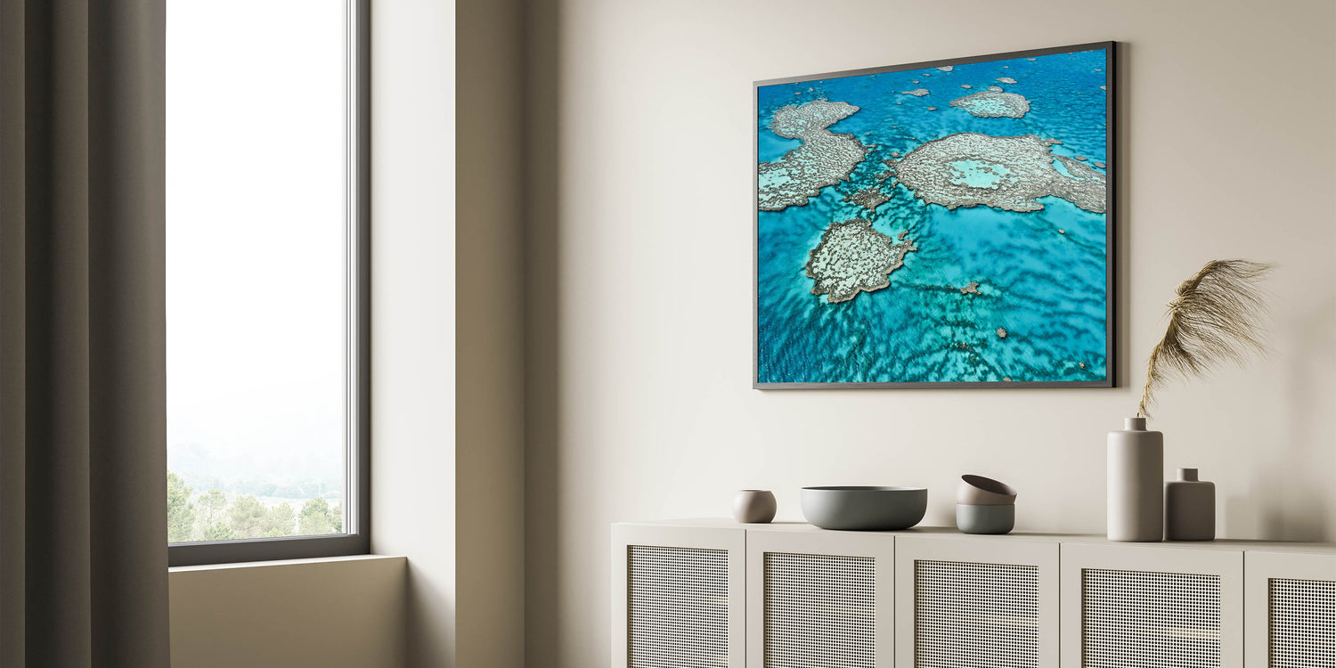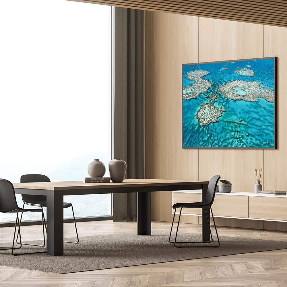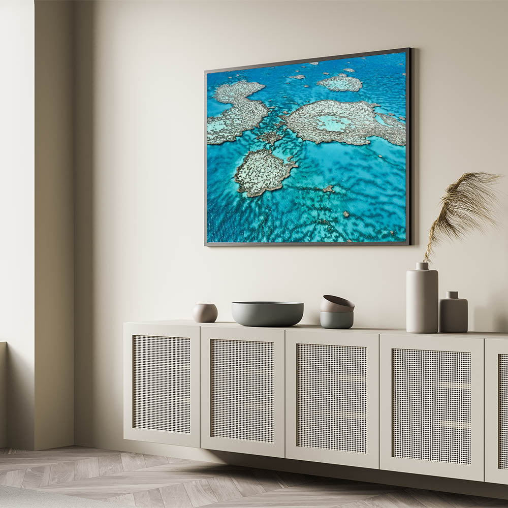 - High-quality canvas print of the Great Barrier Reef's mesmerizing coral structures.
