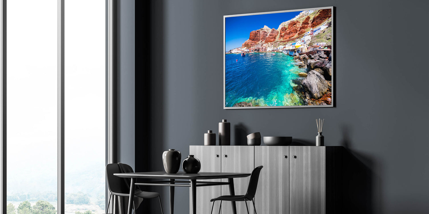 This Scenic Santorini print invites the viewer to experience the breathtaking colors and textures of one of Greece’s most famous islands. It’s the perfect piece to add a bold splash of Mediterranean beauty to any space.