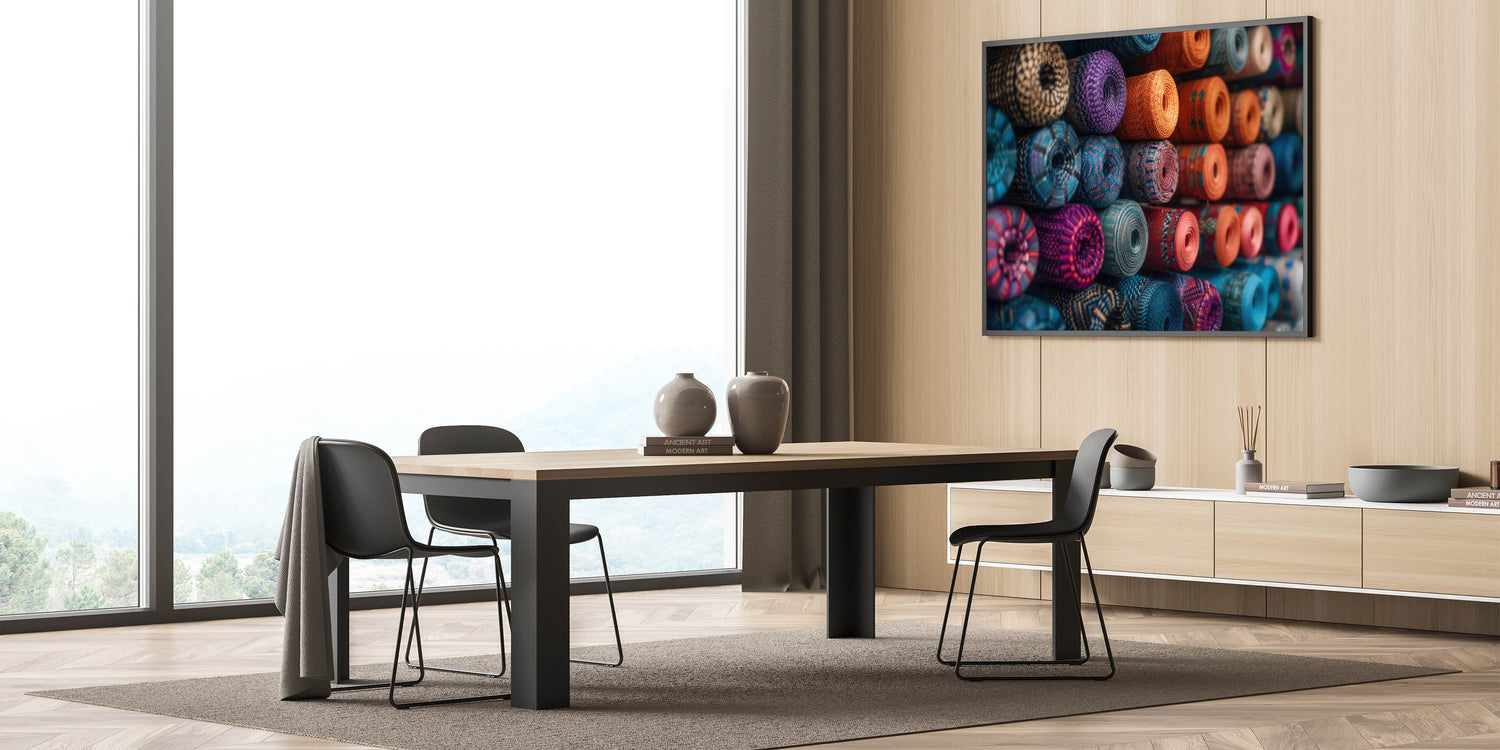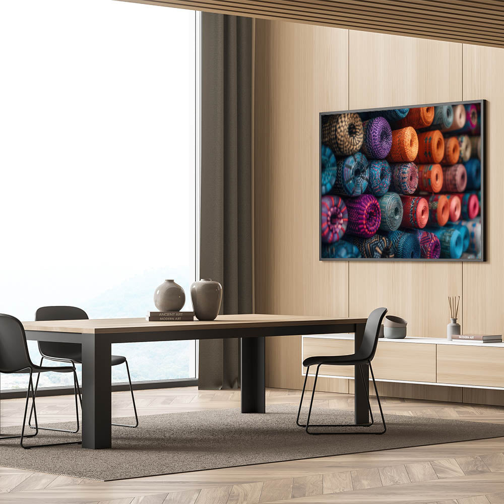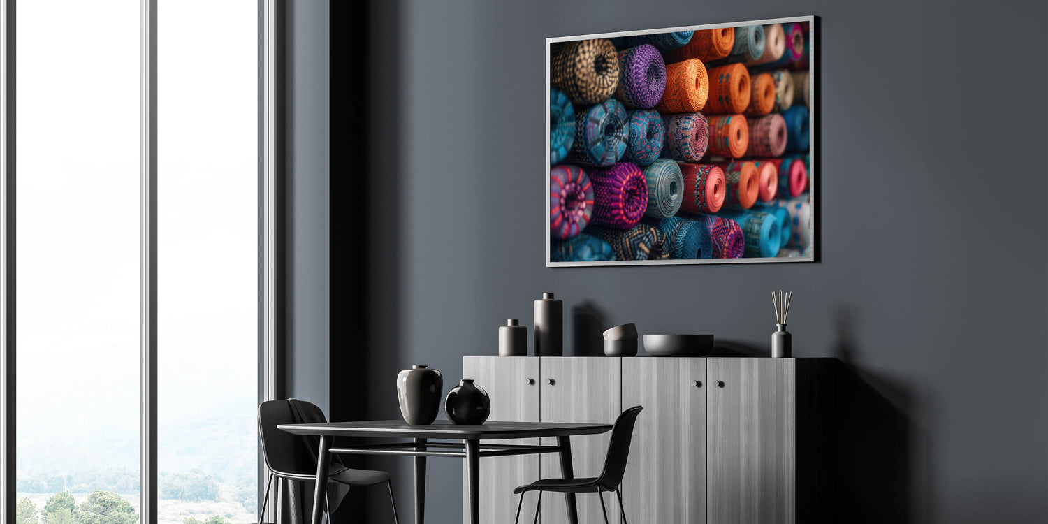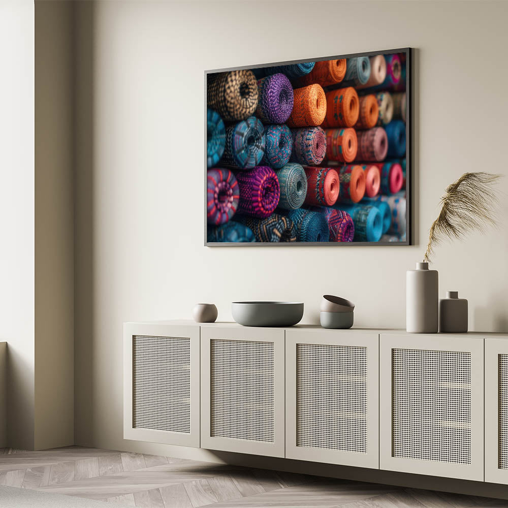 - Materials Available: Choose from options such as Stretched Canvas, Framed Canvas, or Acrylic Glass to enhance the visual impact of these textiles.