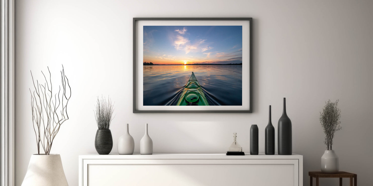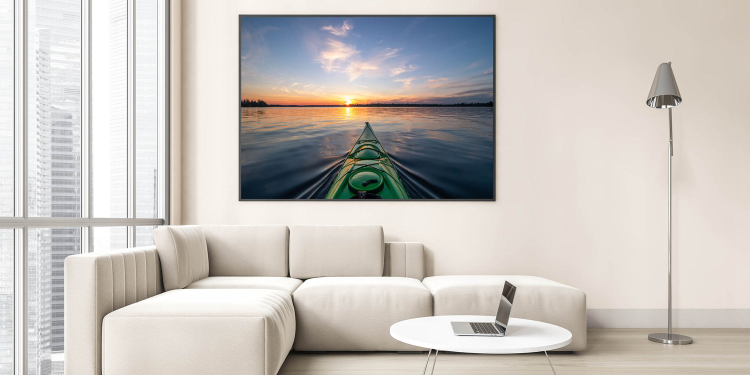 Kayak at Sunset on Ontario Lake – Serene Nature Landscape Wall Art