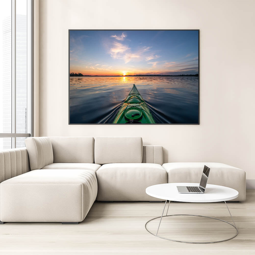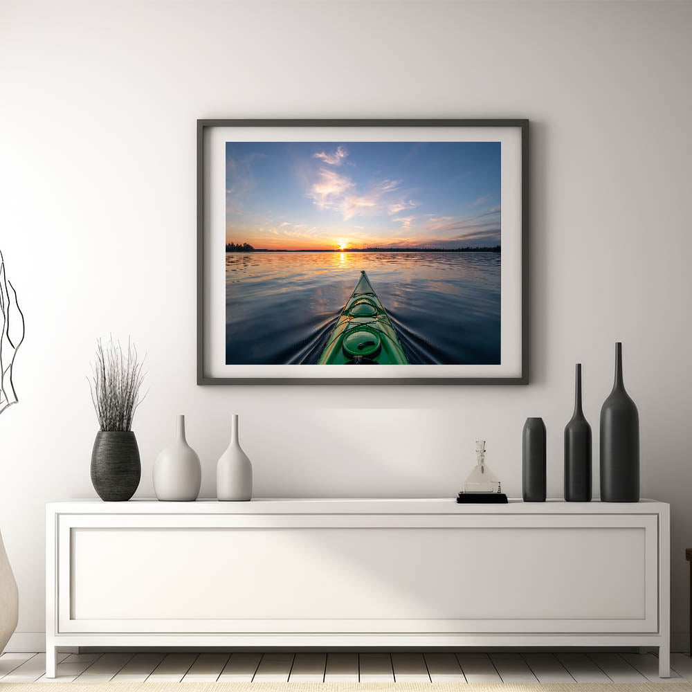 Add this serene Ontario Photography Art to your collection and bring the calm beauty of a sunset paddle into your space. Ideal for adding tranquility and warmth to any room.