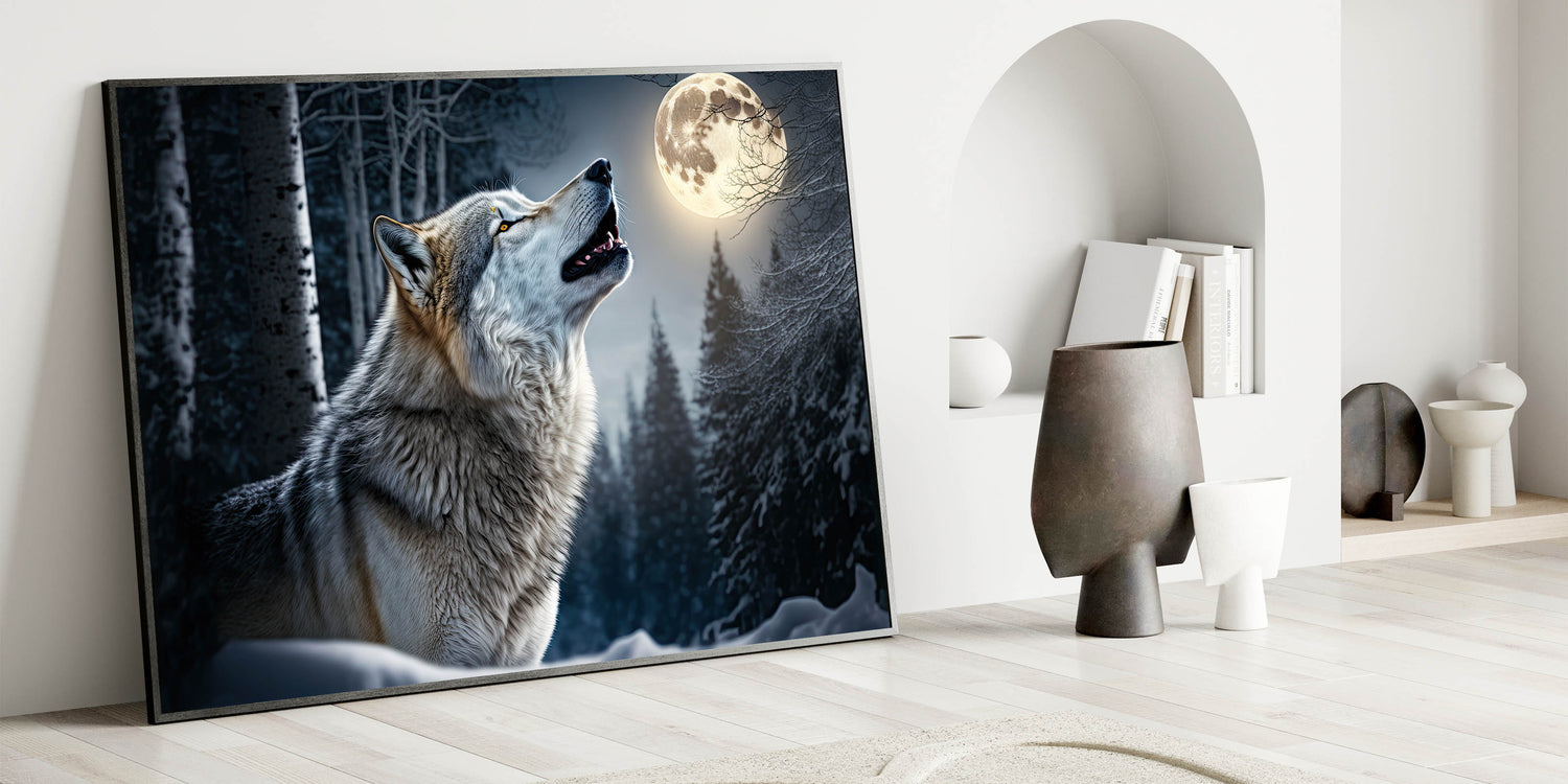 - Nature-Inspired Decor: This moonlit wolf artwork is ideal for adding a touch of natural beauty and mystery to modern, rustic, or nature-themed interiors.