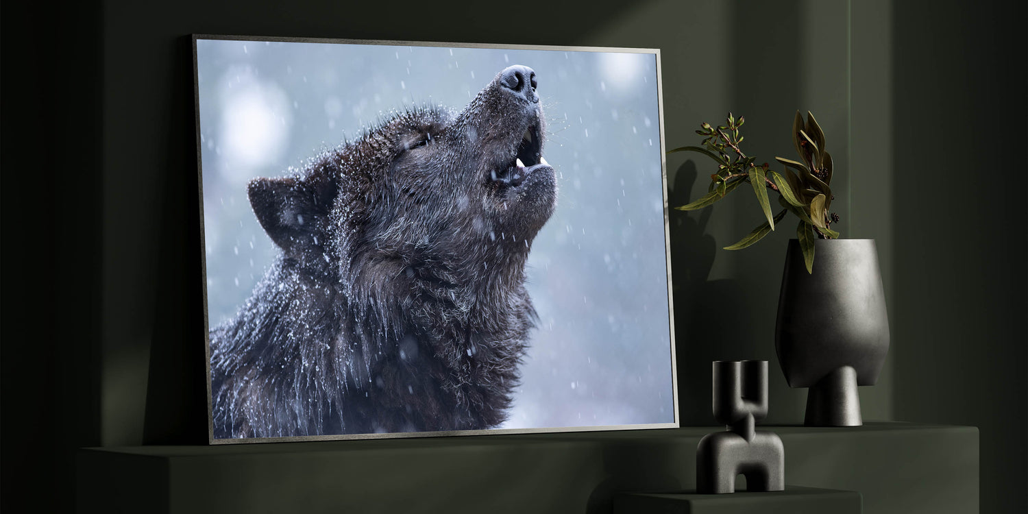 - Detailed and Dynamic Print: The intricate details of the wolf’s fur and the falling snow create a lifelike and immersive experience.