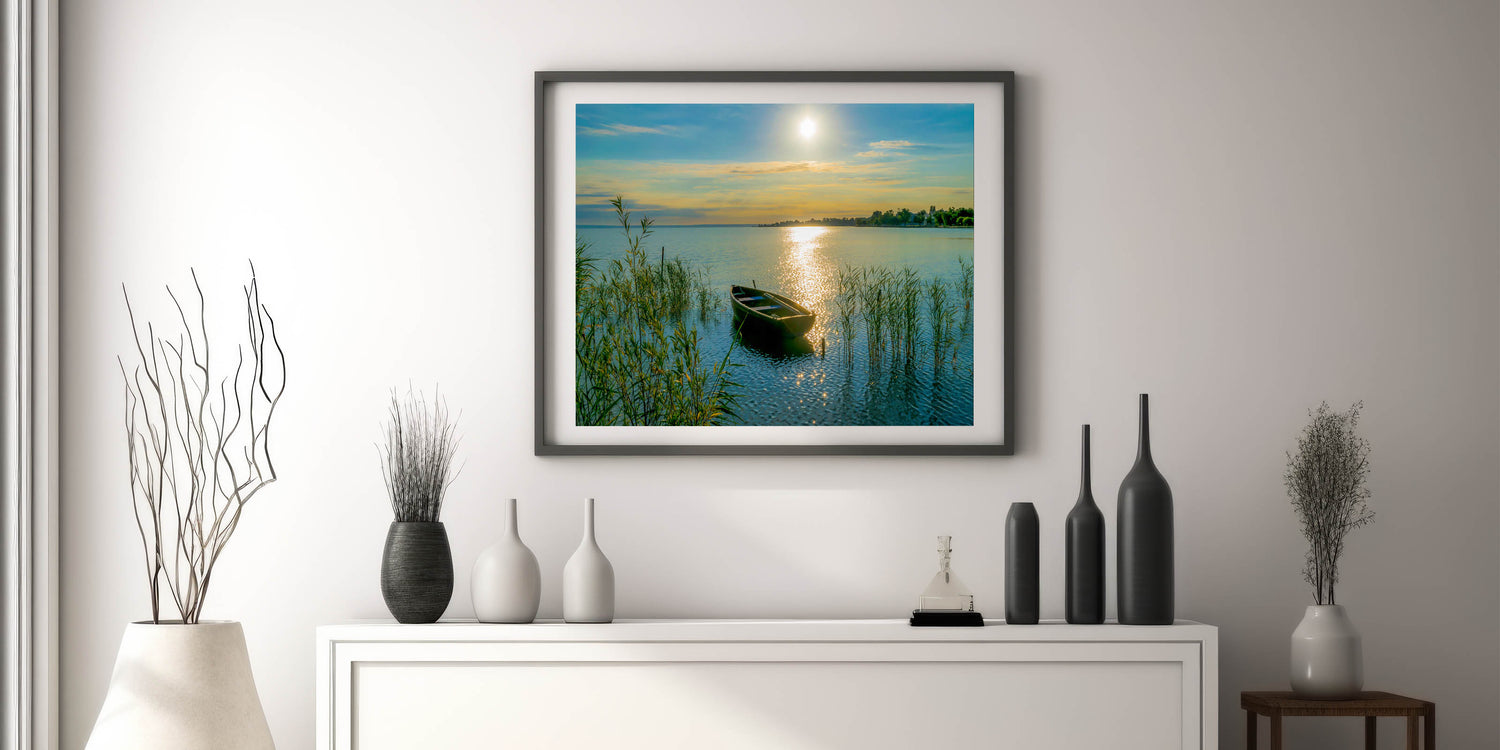 Transport yourself to the tranquil beauty of Hungary’s lakeside with this stunning Hungarian Landscape Art. Featuring a peaceful boat resting on the calm waters, illuminated by the soft glow of the sunrise, this Hungary Scenic Print captures the serene beauty of nature. The blend of the soft morning light and the stillness of the water creates a calming atmosphere, perfect for bringing a touch of serenity into any space.