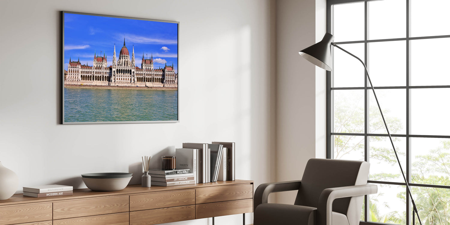 - Gorgeous Hungary artwork featuring the Hungarian Parliament in daylight