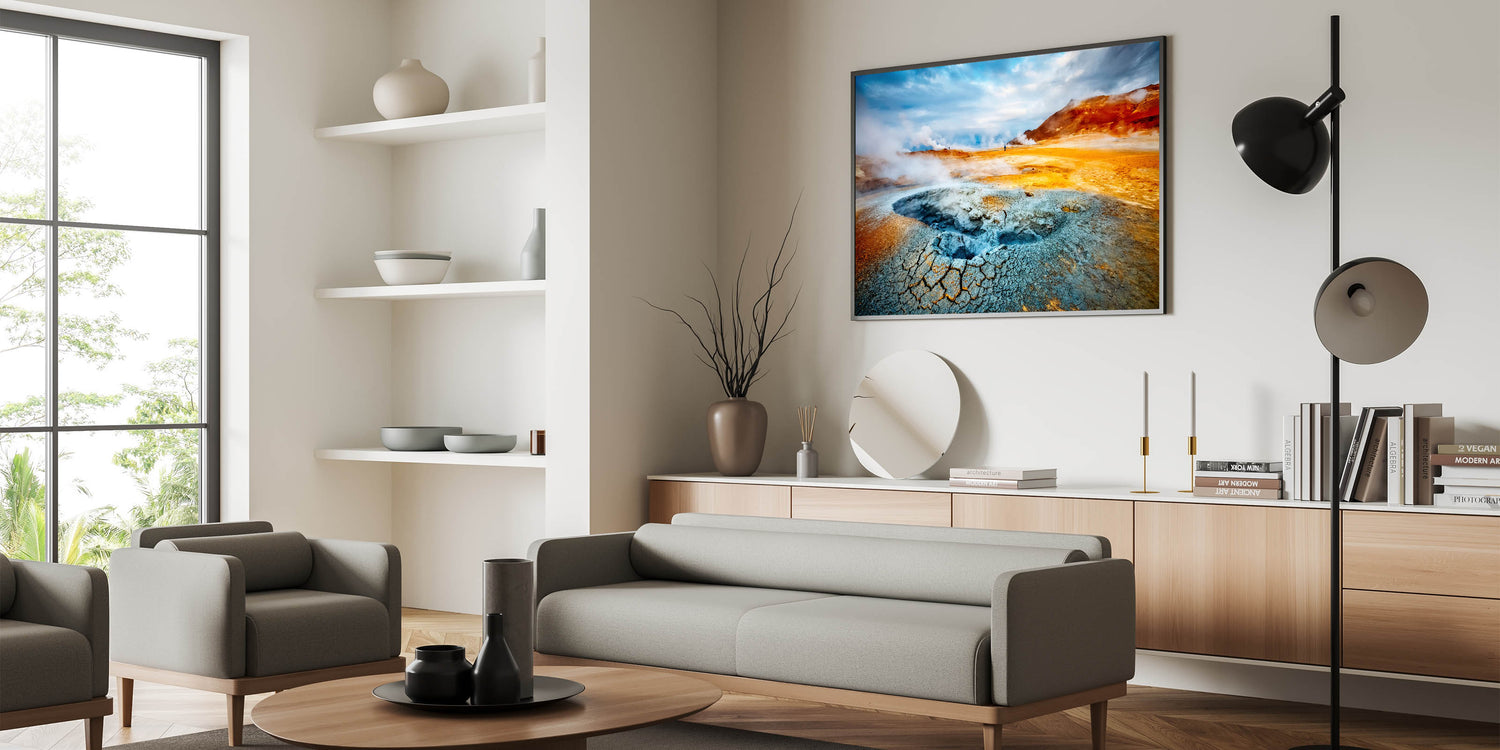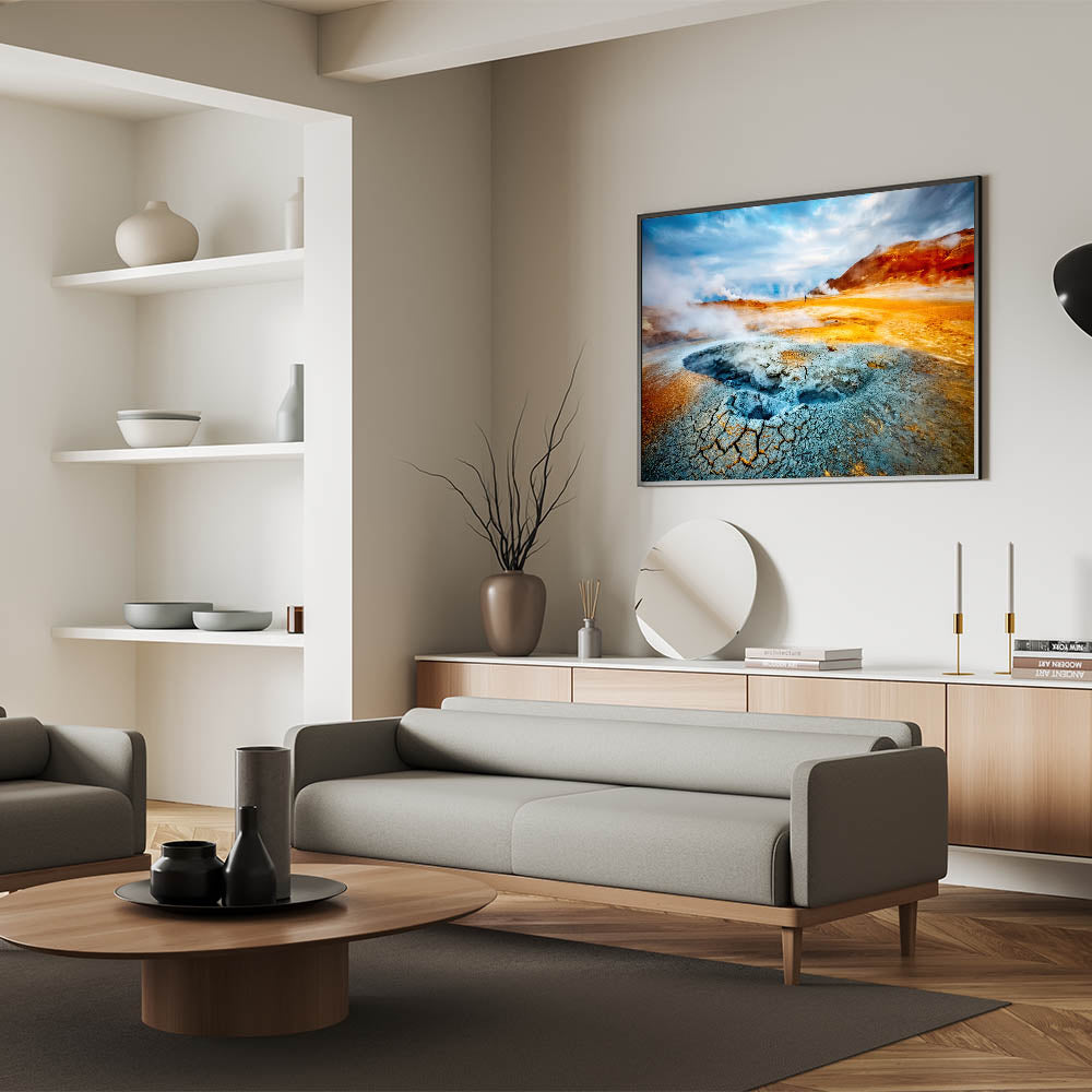 Transform your space with this stunning Iceland canvas print, showcasing one of the country's most unique geothermal wonders. Perfect for those who admire Icelandic nature art and wish to bring a piece of Iceland's elemental beauty into their décor.