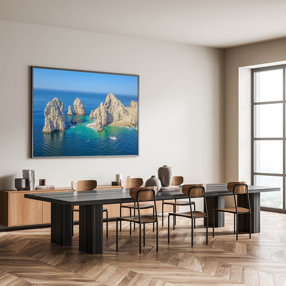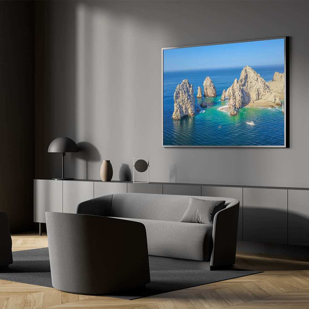 Bring the awe-inspiring natural beauty of Cabo San Lucas into your home with this stunning coastal artwork. Ideal for nature lovers and coastal decor enthusiasts, this piece will make a bold and calming statement in any room.