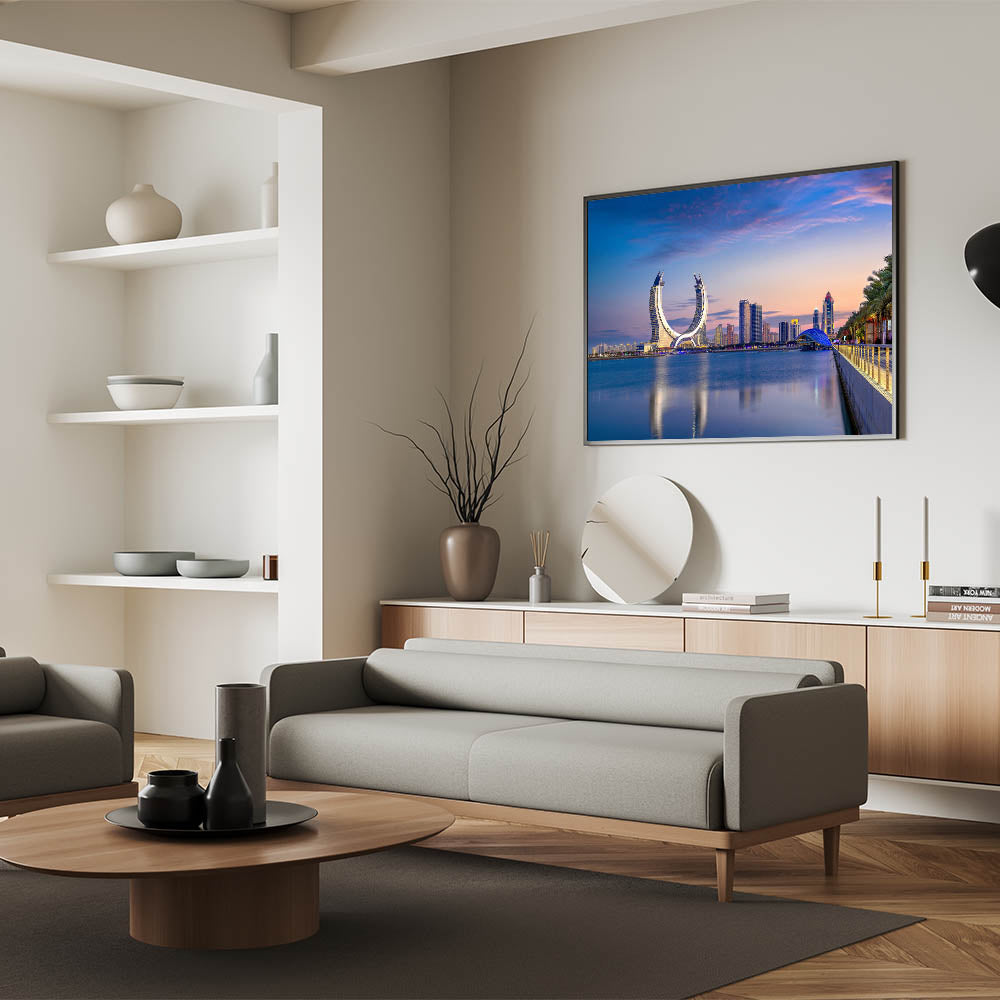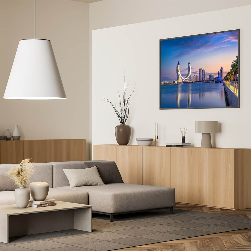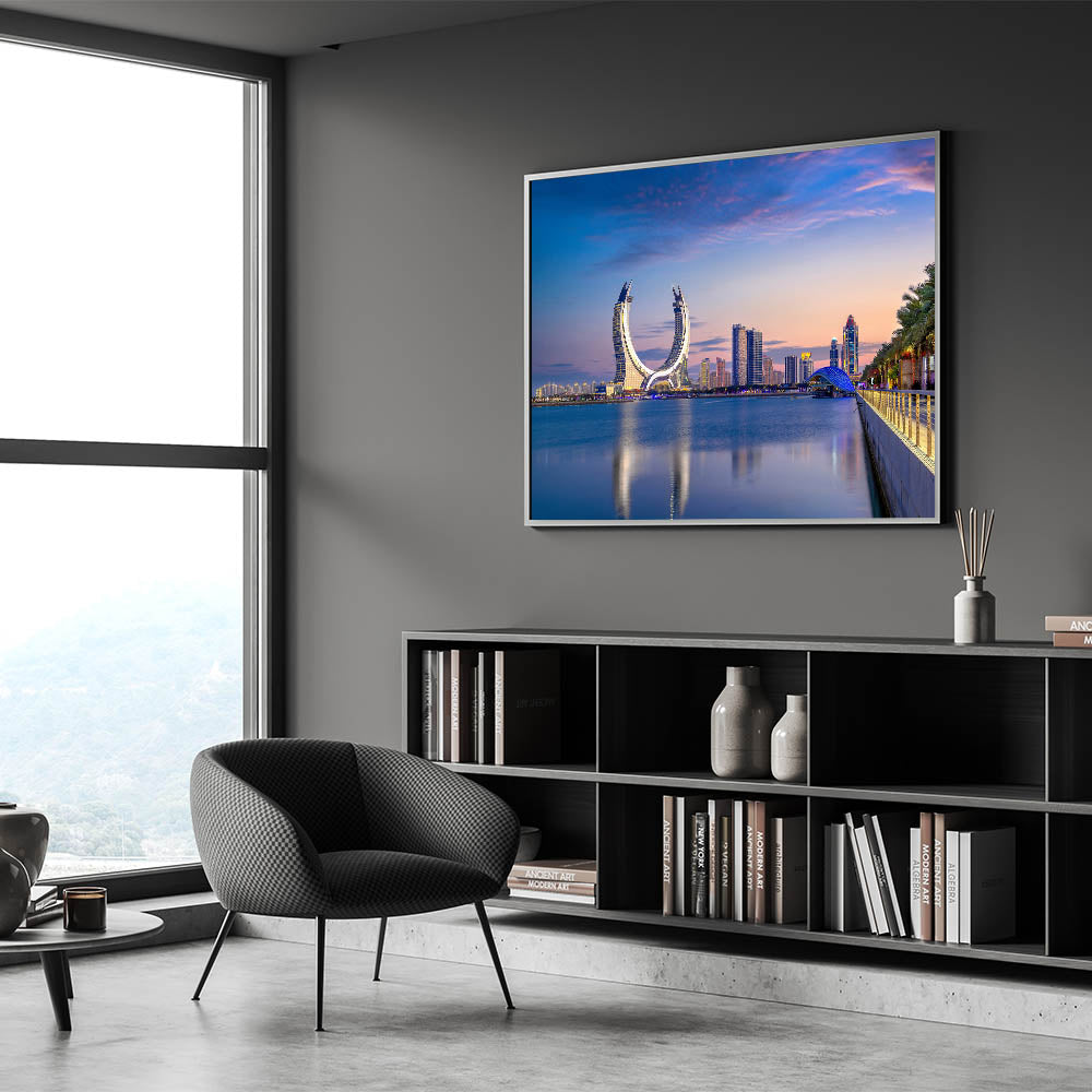 Ideal for enthusiasts of modern architecture or collectors of cityscape art, this print offers a window into the dynamic urban landscape of Qatar, perfect for enhancing any living space or business environment.