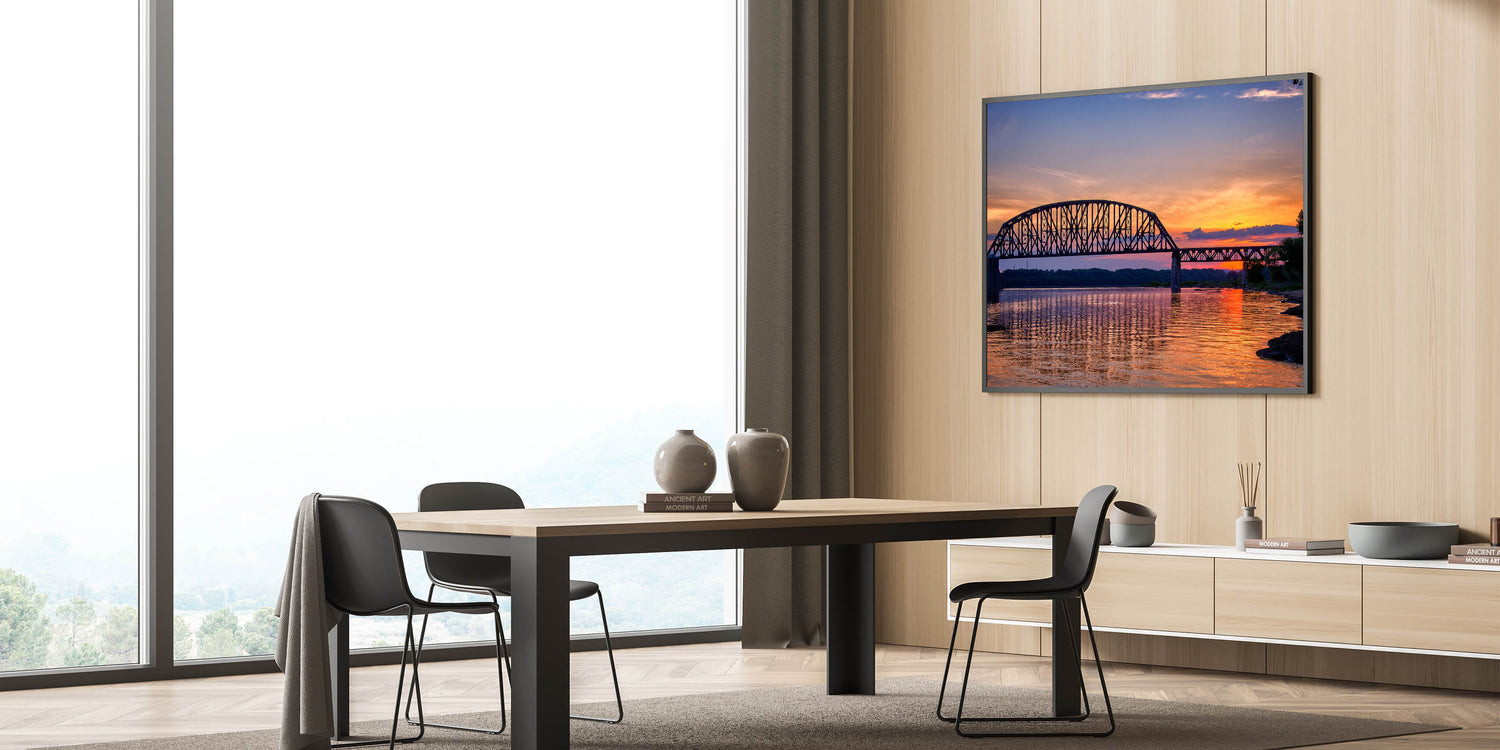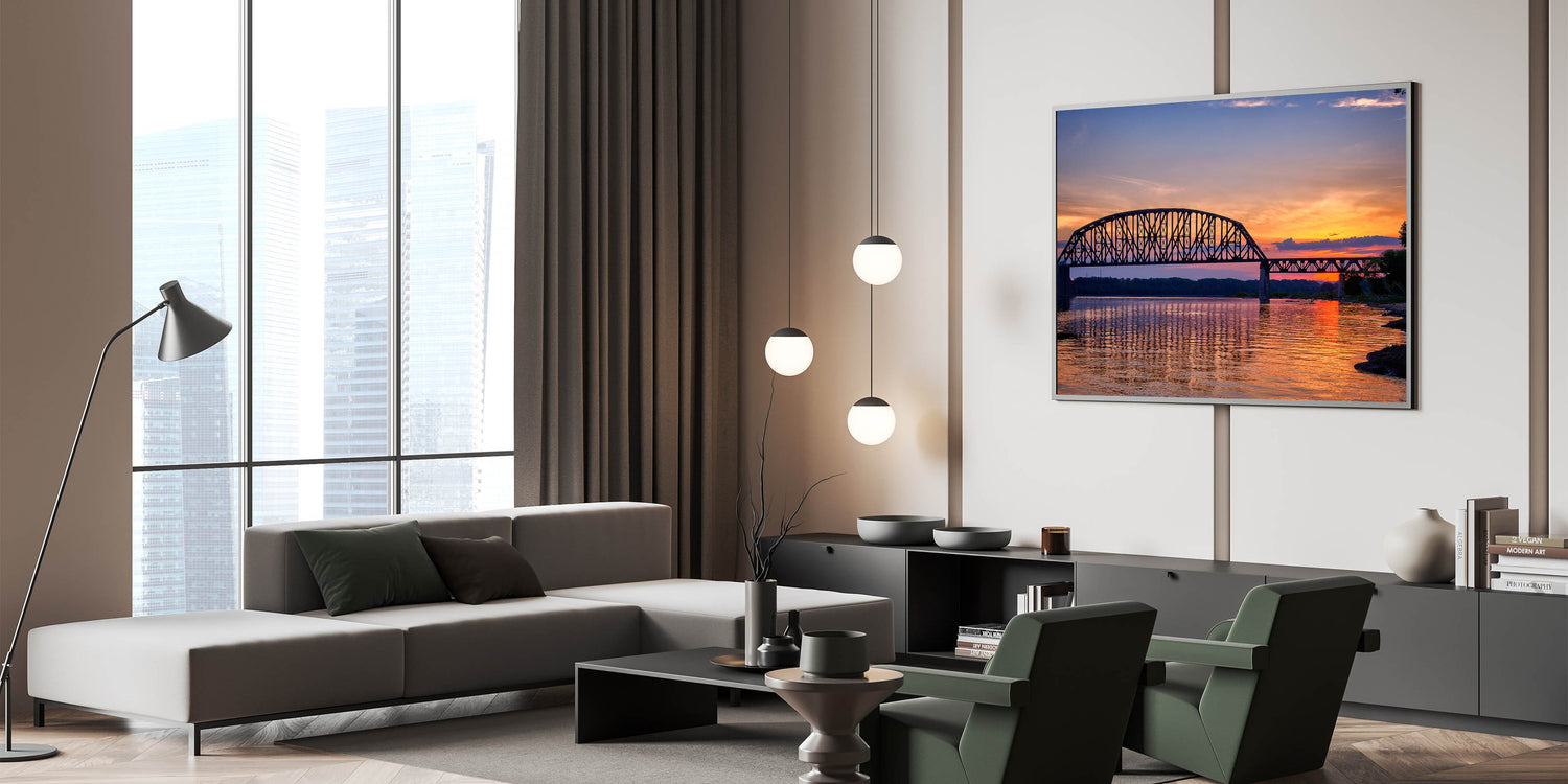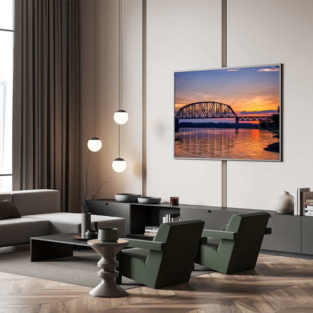 - Vibrant and Detailed Print: The sunset’s warm colors and the intricate details of the bridge are captured in high resolution, making this artwork stand out.