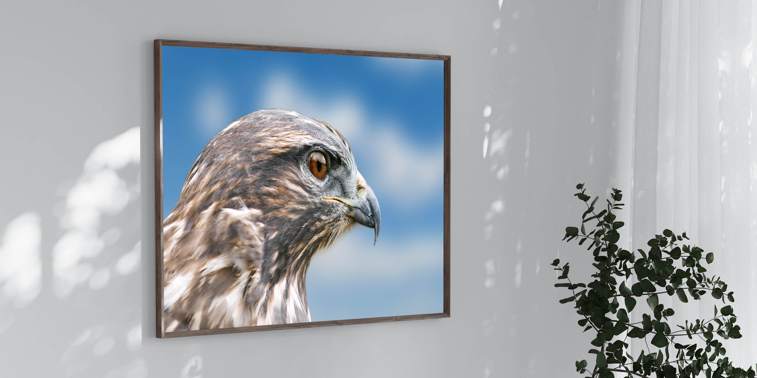 - High-Resolution Print: Captures the fine details of the hawk’s feathers and eye with stunning clarity.