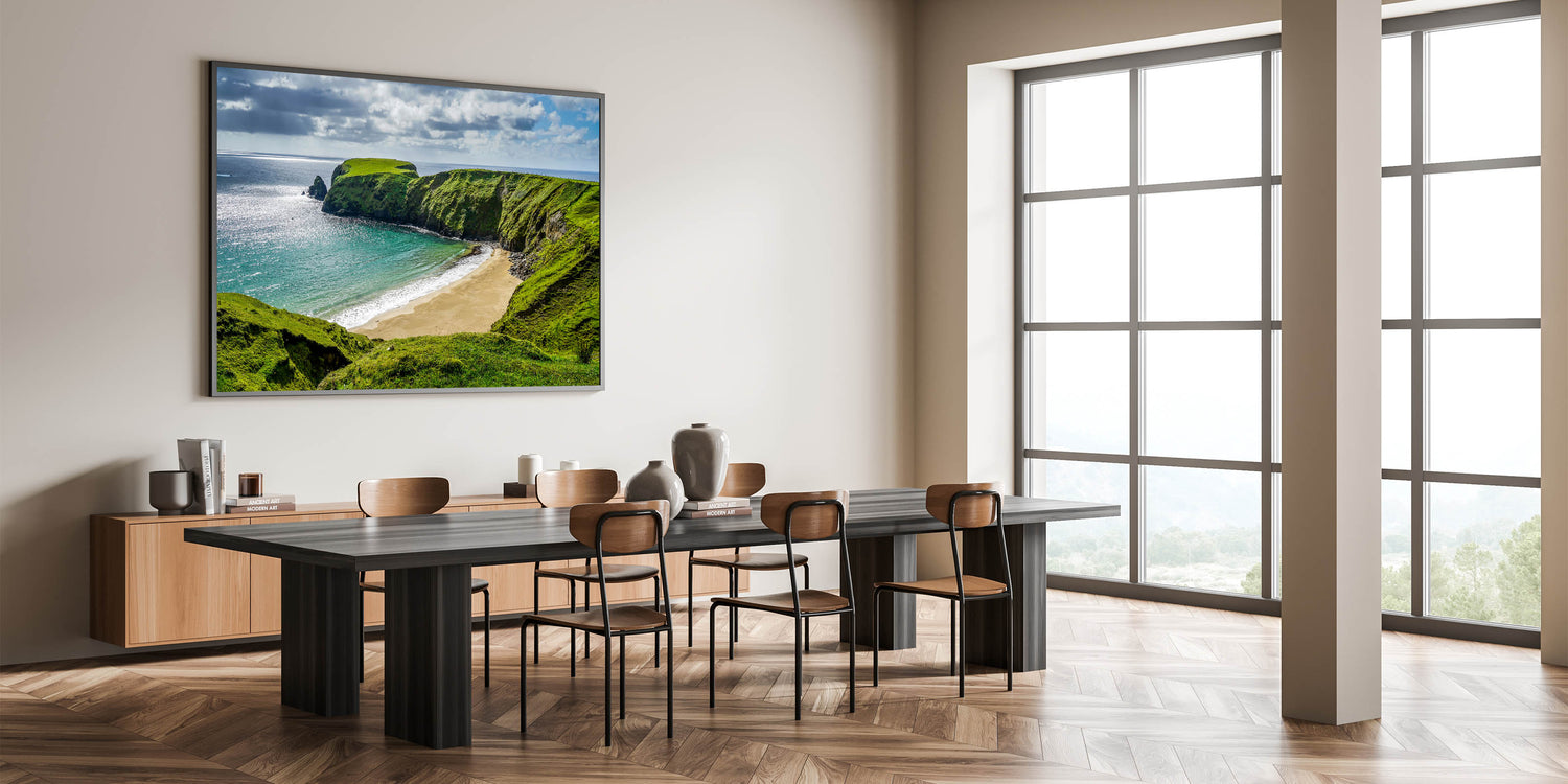 - Ireland-inspired wall art, showcasing the vibrant greens and blues of the Irish coastline.
