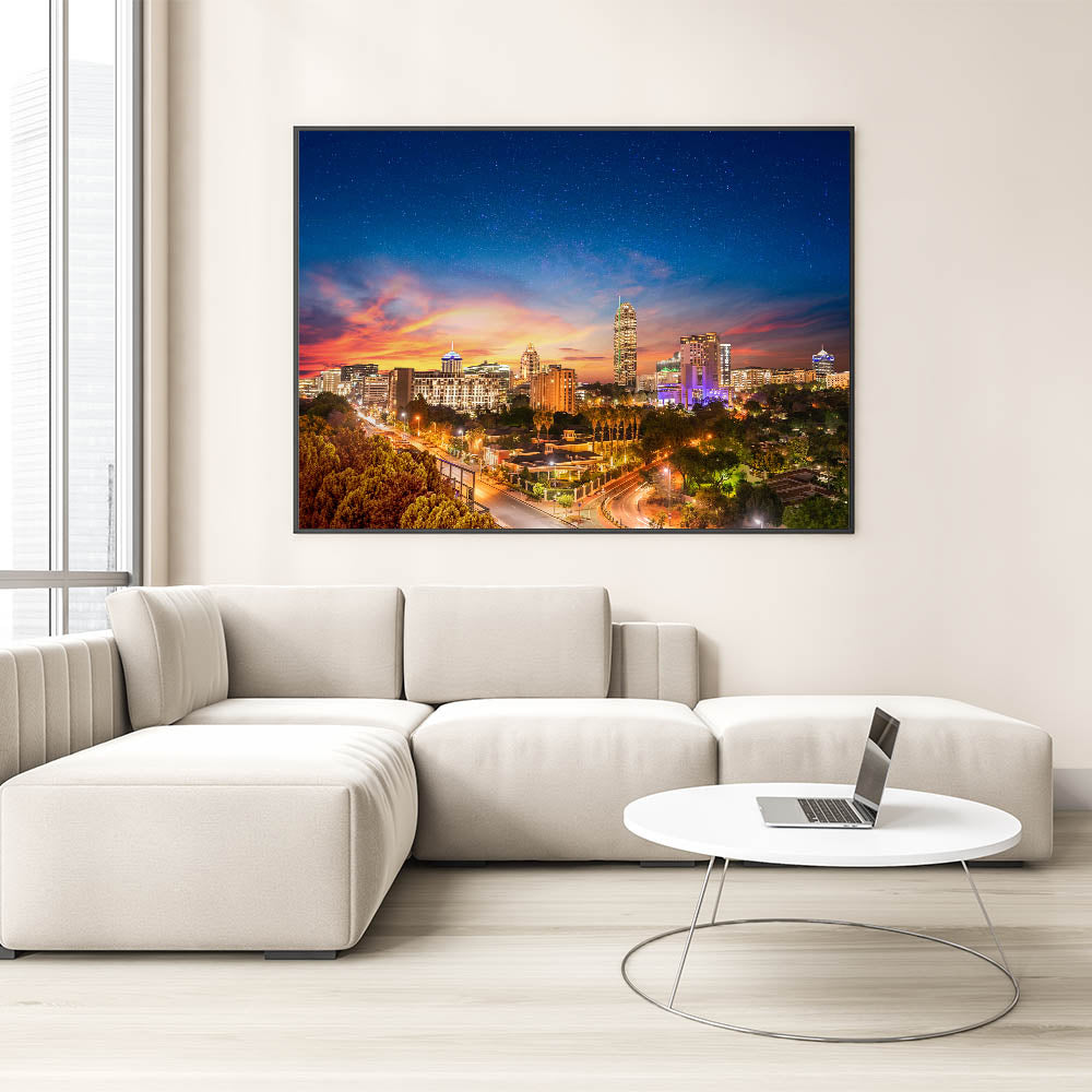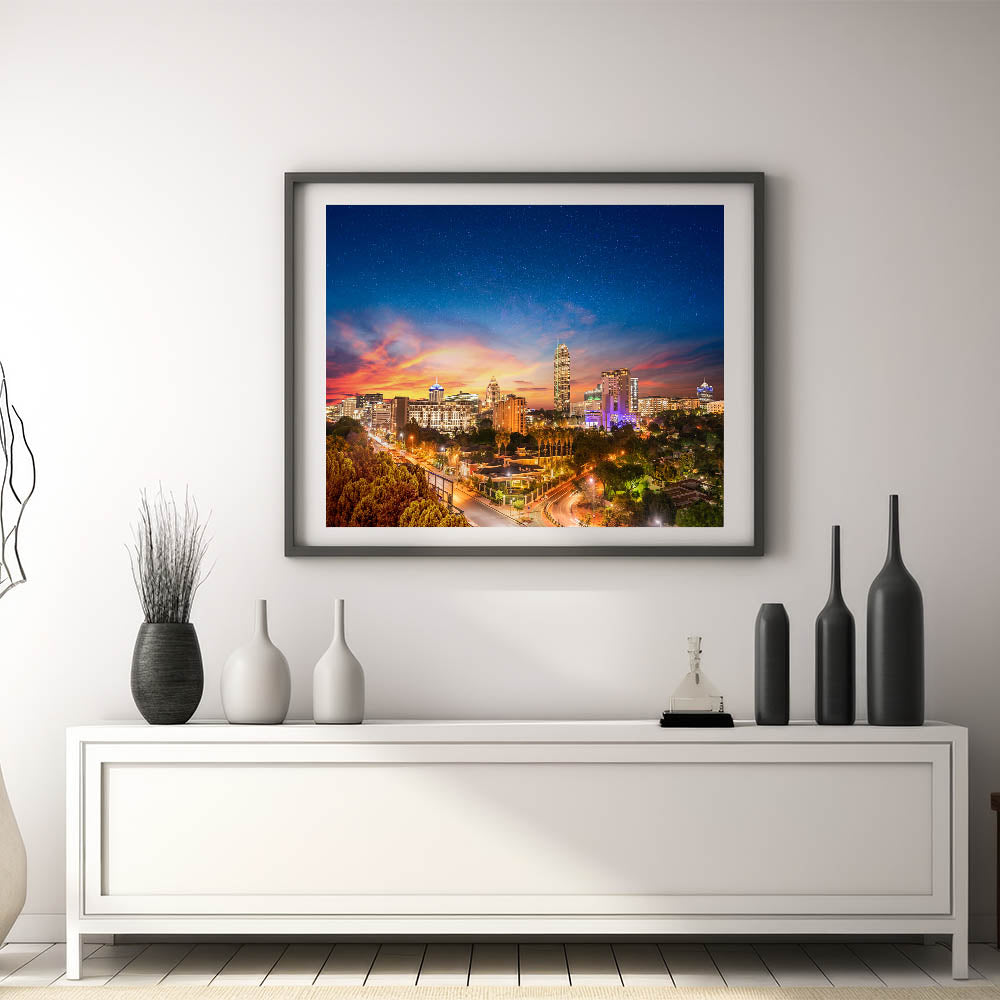 • Showcases the iconic skyline of Johannesburg at sunset, making it a perfect piece for city lovers.