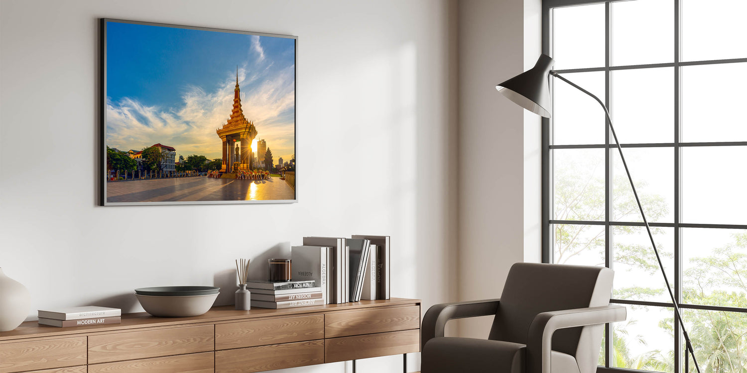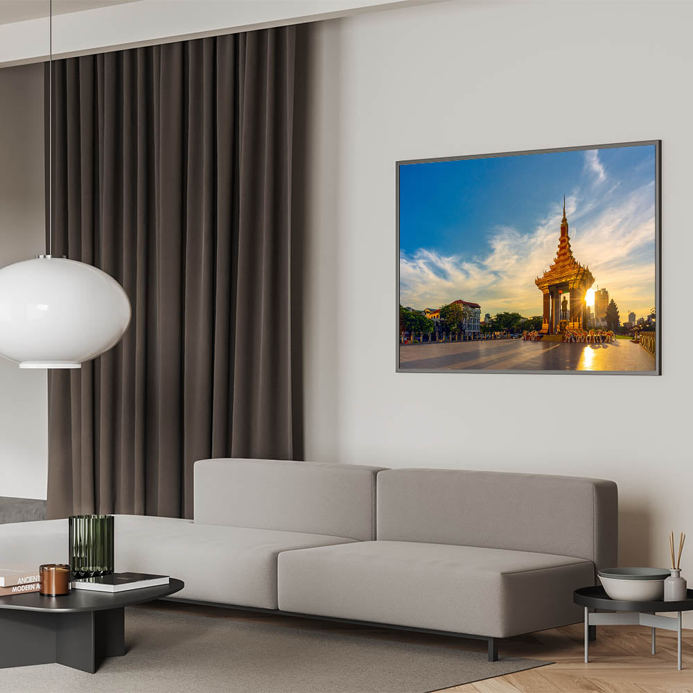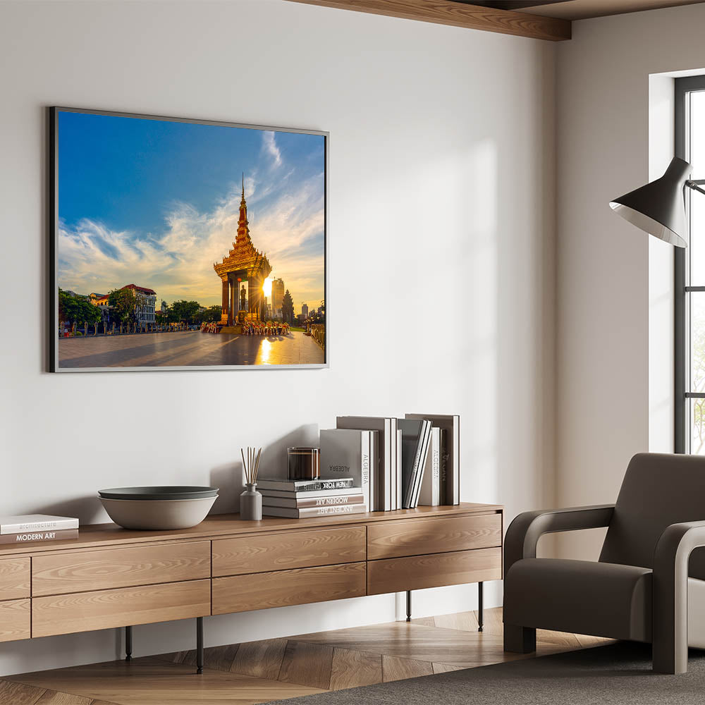 This artwork is ideal for those who appreciate the historical and cultural significance of Southeast Asia. Bring the dignity and beauty of Cambodia’s Independence Monument into your home and let it inspire strength and pride.