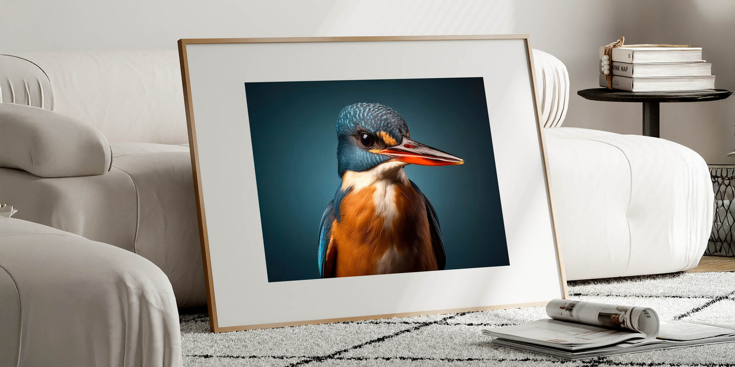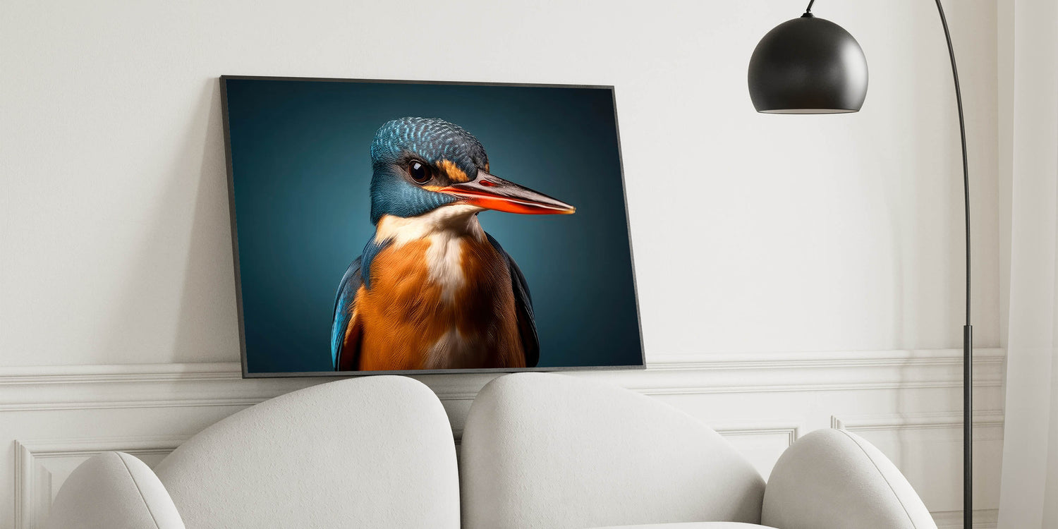 This piece of Tropical Birds artwork is not just a decor item; it's a celebration of nature's elegance. Whether you choose canvas, acrylic, or a framed print, this kingfisher portrait will add a serene and sophisticated touch to your home.