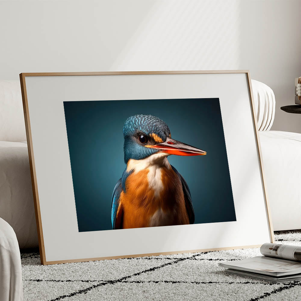 Enhance your space with the refined beauty of this Kingfisher Portrait Wall Art. This stunning artwork captures the intricate details and vibrant colors of a kingfisher, showcasing its regal posture and captivating gaze. The rich blue and orange hues contrast beautifully against the soft background, making this piece an elegant addition to any room. Perfect for those who appreciate the beauty of wildlife and desire to bring a touch of nature indoors.