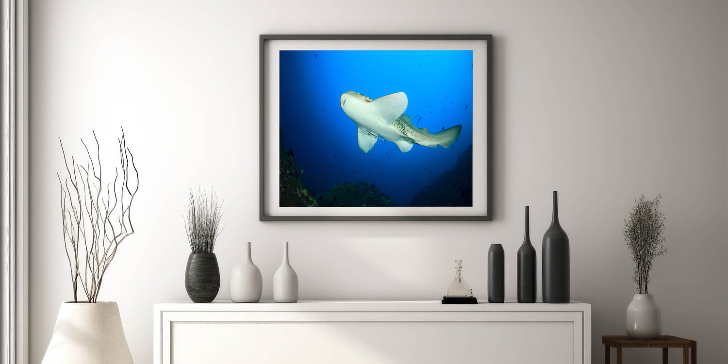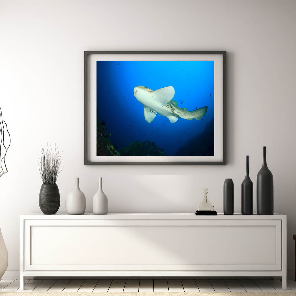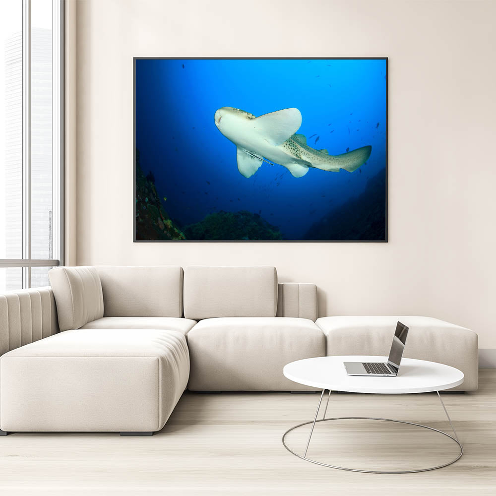 Dive into the depths of the ocean with this captivating wall art showcasing a leopard shark swimming gracefully in Thailand’s vibrant marine waters. This canvas print captures the beauty and elegance of one of the ocean's most fascinating creatures, set against a vivid blue underwater backdrop.