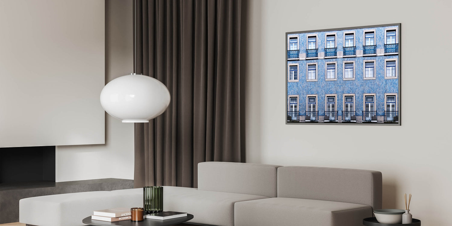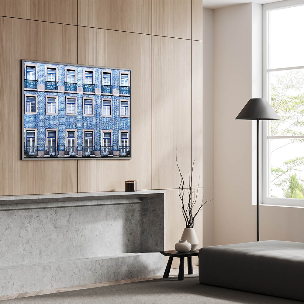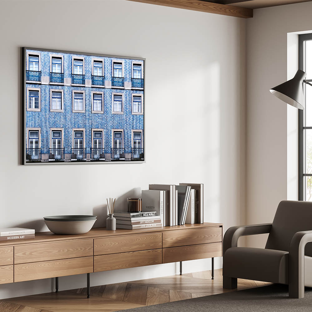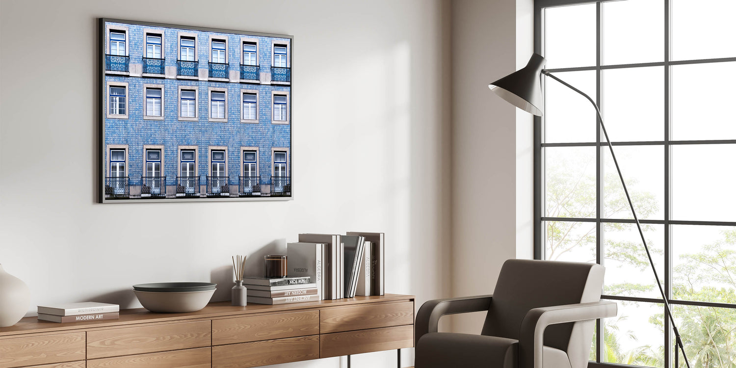 Bring the charm of Lisbon into your space with this stunning wall art, capturing the beauty of the city's iconic tiled buildings. This piece showcases a captivating pattern of blue and white tiles, which are characteristic of Lisbon's architectural beauty. Perfect for adding a touch of Portugal’s rich history to any room, this artwork evokes the timeless allure of the city's streets.
