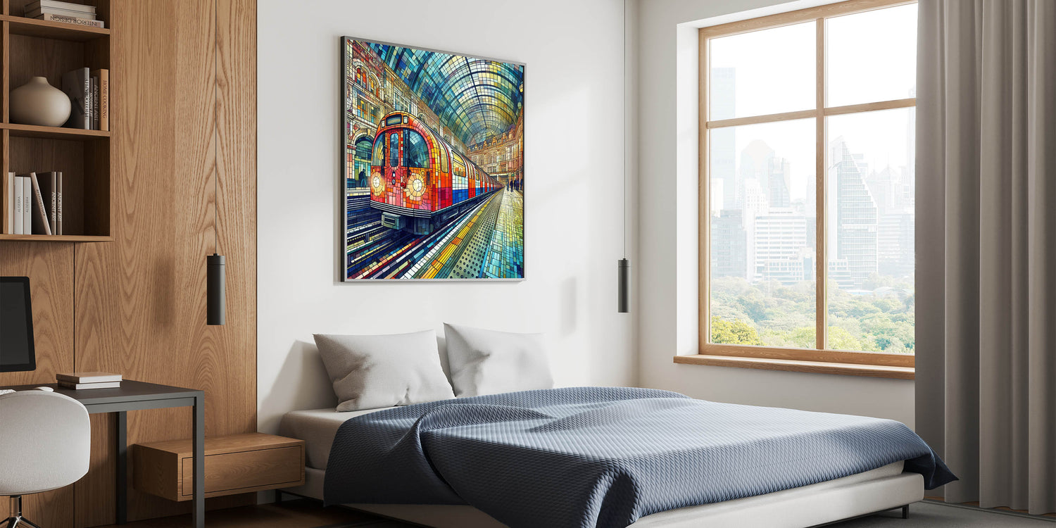 This artwork captures the essence of London’s Underground in a colorful and creative way. Its mosaic style breathes new life into the iconic Tube, making it a statement piece that will bring energy and creativity to any room.