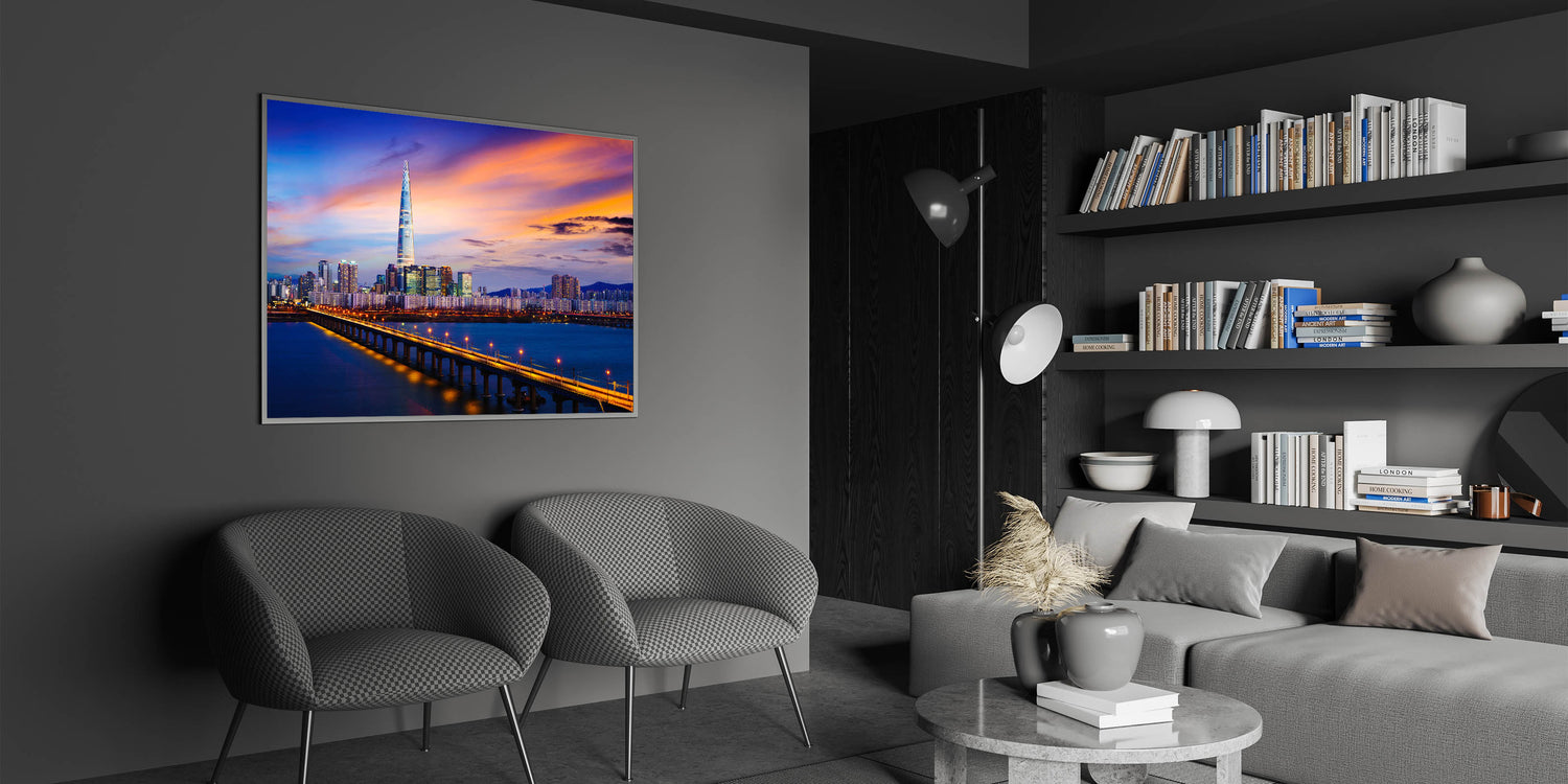 With its dynamic portrayal of Seoul’s skyline, this wall art adds a touch of elegance and modernity to any room. The striking contrast between the glowing bridge and the sunset makes this piece a captivating addition to your collection.