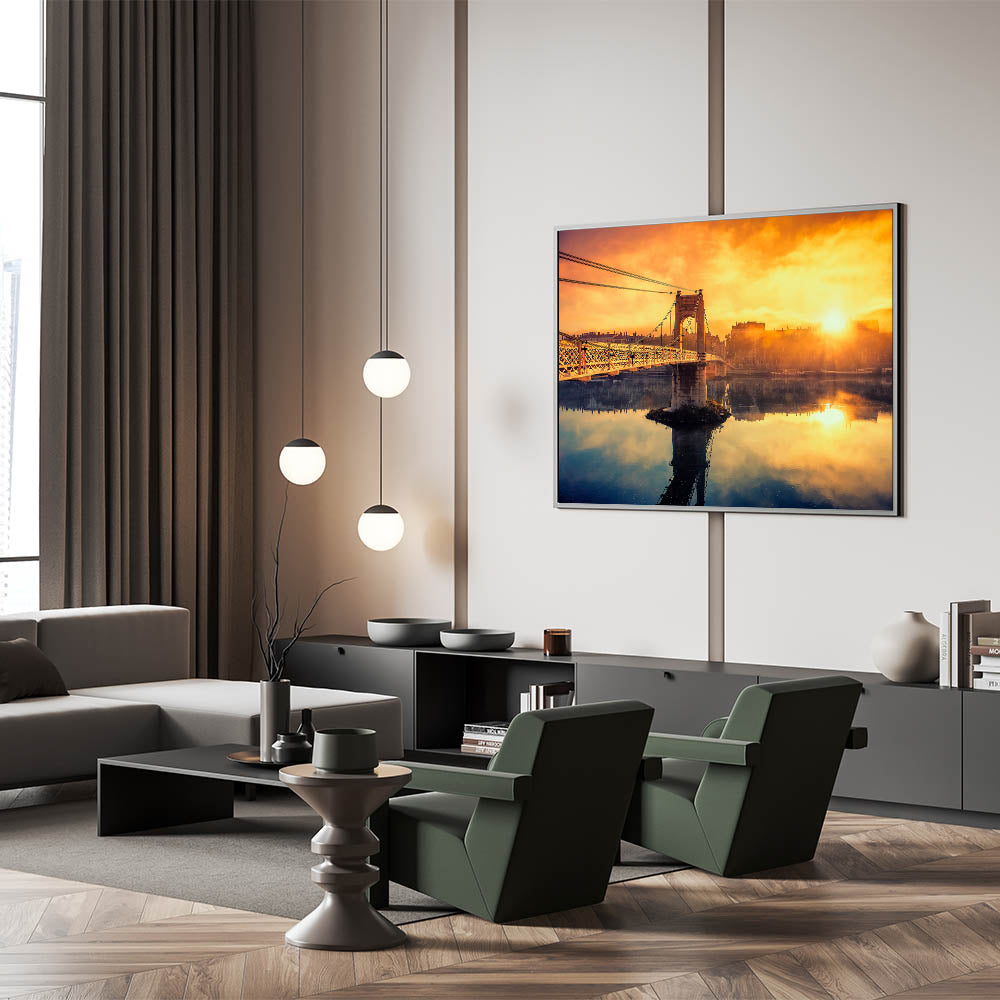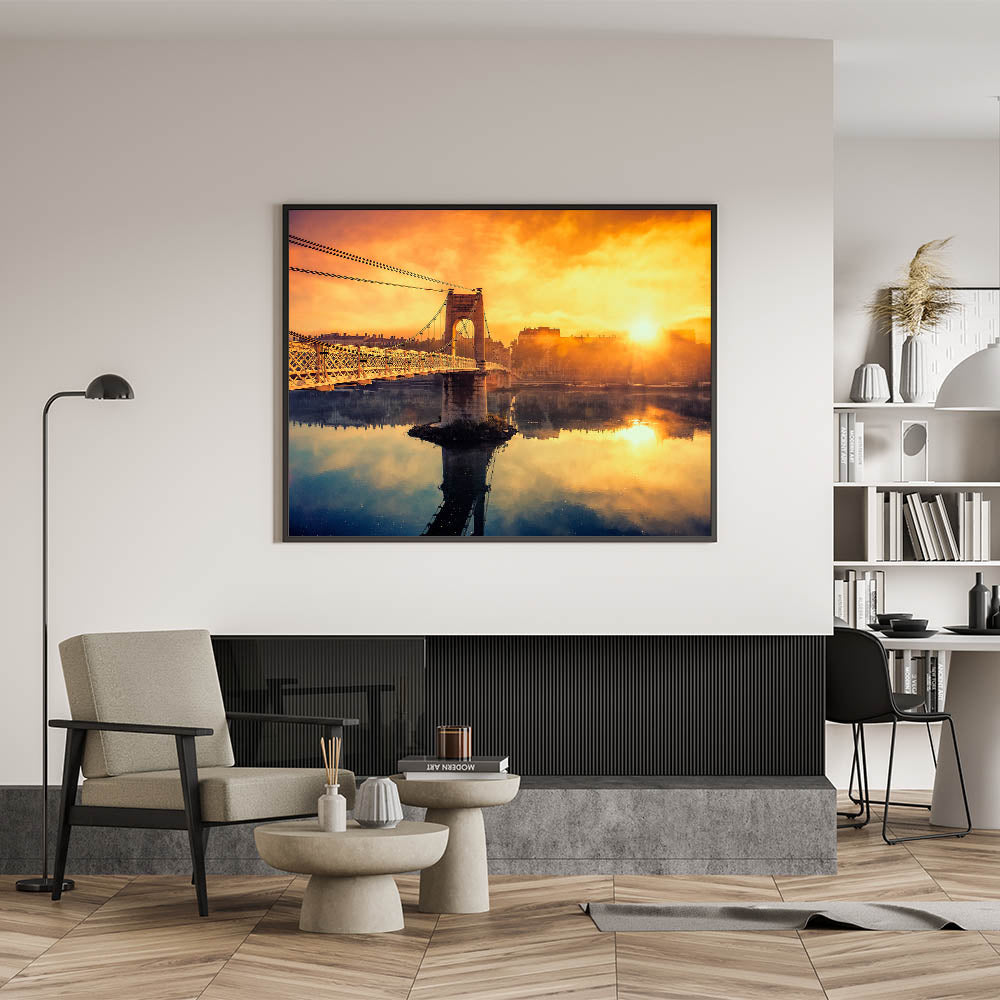 Capture the breathtaking beauty of Lyon with this stunning wall art, featuring a mesmerizing sunset over the iconic Rhône River and bridge. This artwork brings the warm, golden hues of the sunset reflecting off the water, making it a perfect piece for any room looking for a blend of elegance and tranquility. Ideal for those who love French decor and captivating cityscapes, this artwork will add a touch of Lyon’s vibrant charm to your space.