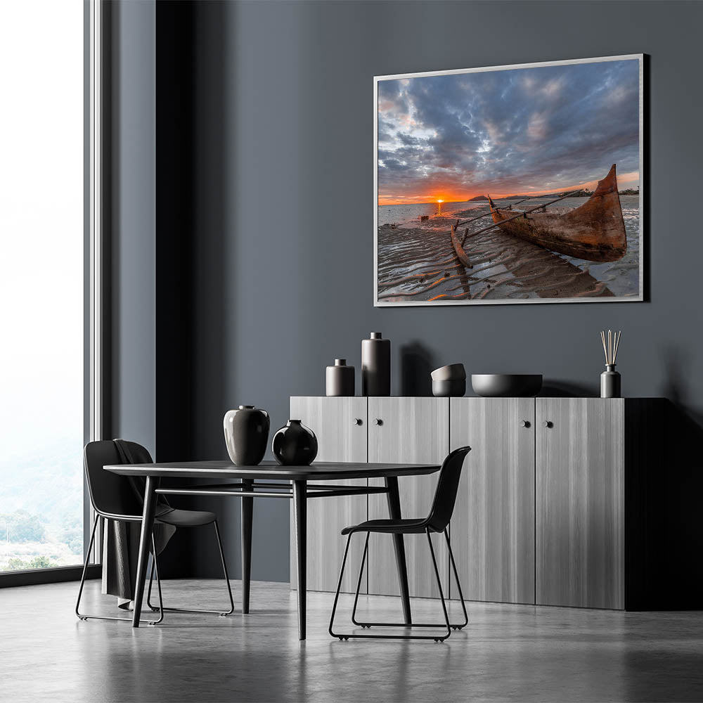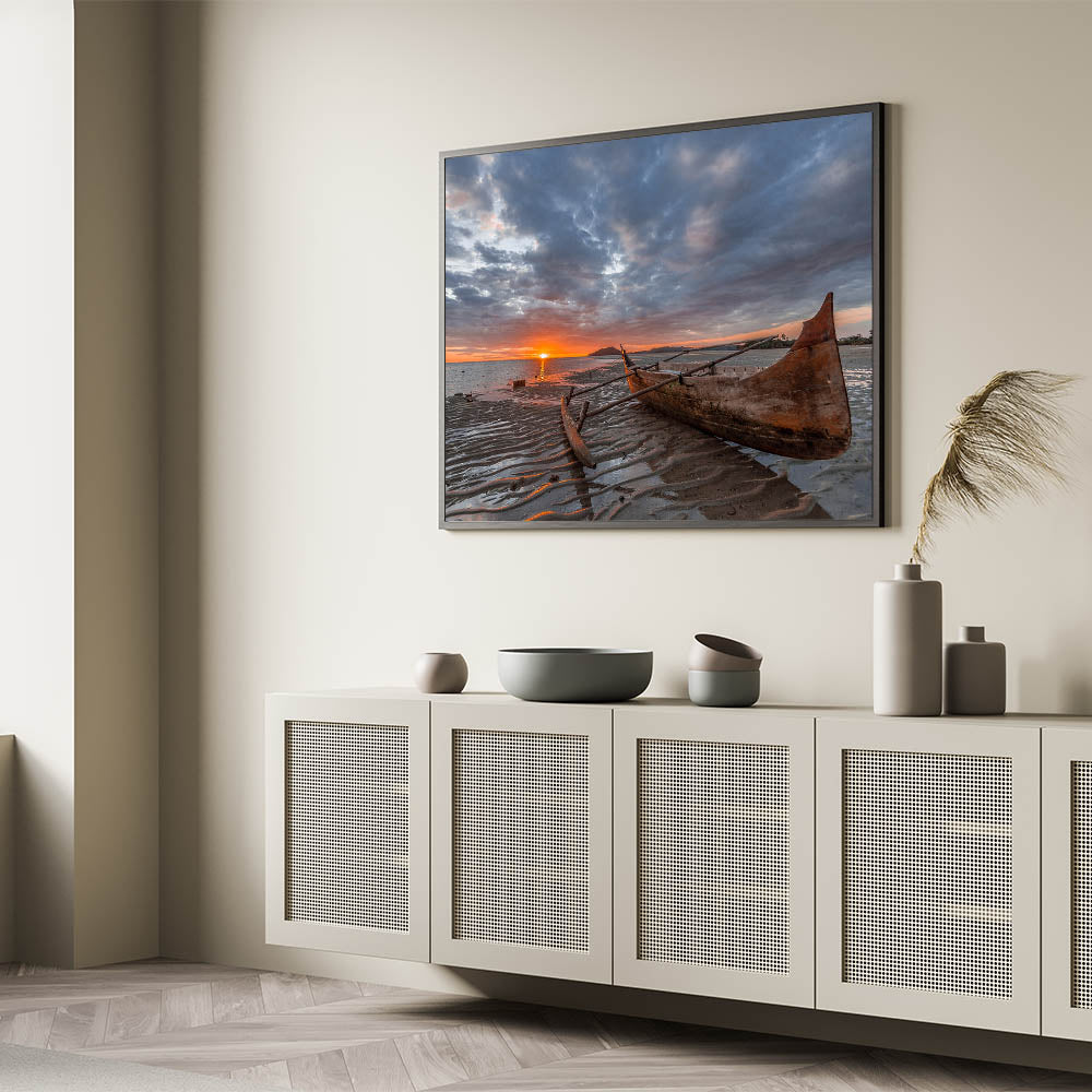 Transform your space with the serene beauty of Madagascar captured in this stunning wall art. This piece features a breathtaking sunset over the tranquil beaches of Madagascar, highlighting the region's natural beauty. The warm hues of the setting sun against the calm ocean create a peaceful atmosphere, perfect for any room in your home or office.