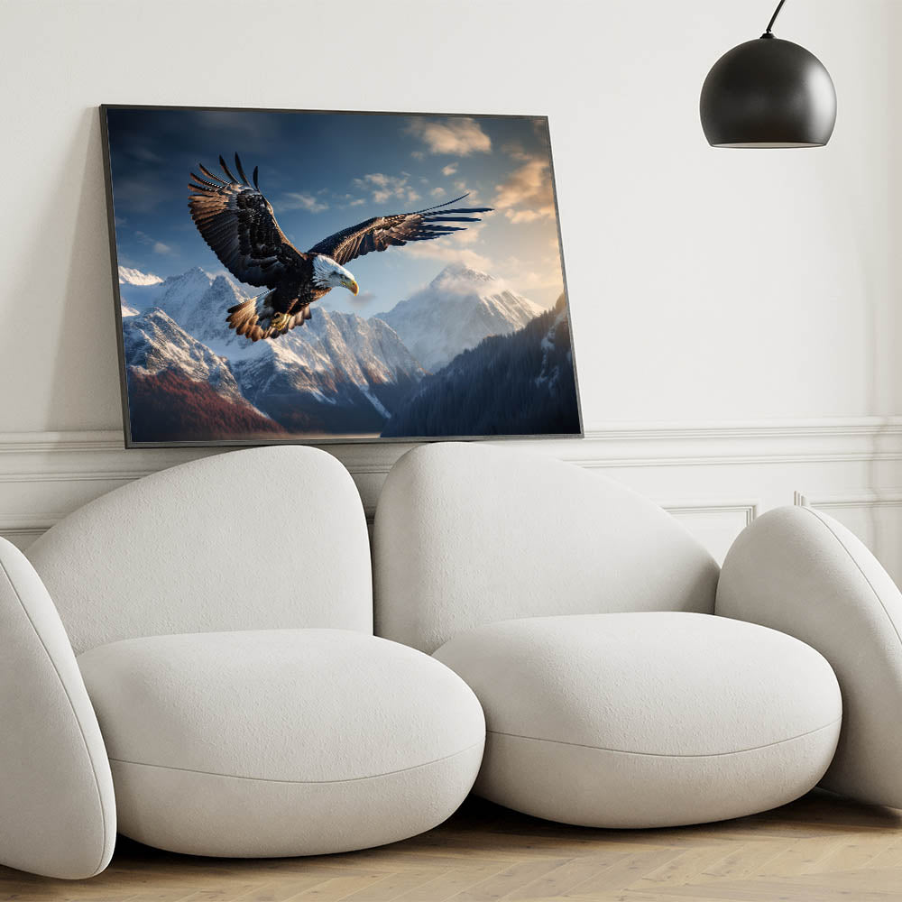 - Breathtaking Imagery: The eagle's commanding presence against the stunning mountain backdrop adds a touch of grandeur to any room.