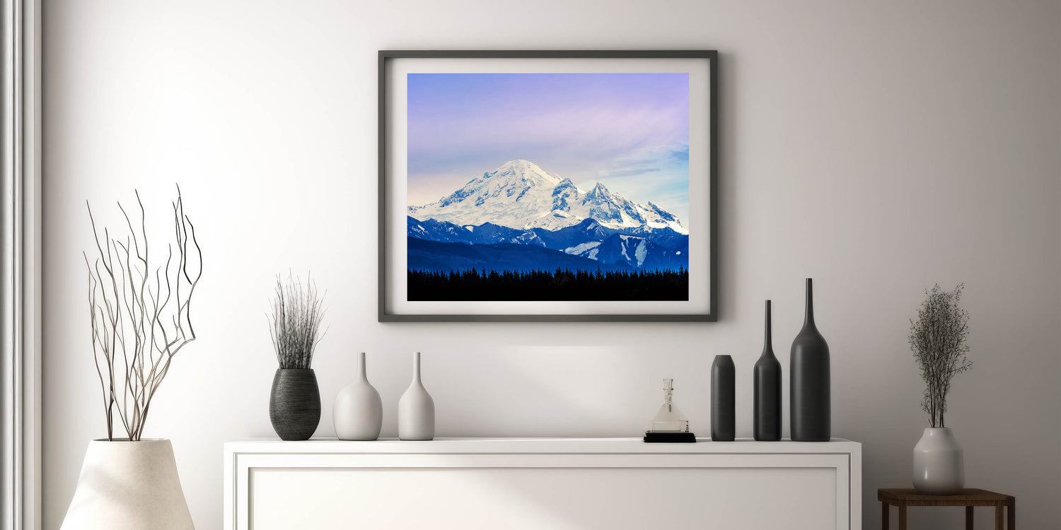 - High-quality Seattle prints showcasing the beauty of Mount Rainier in winter