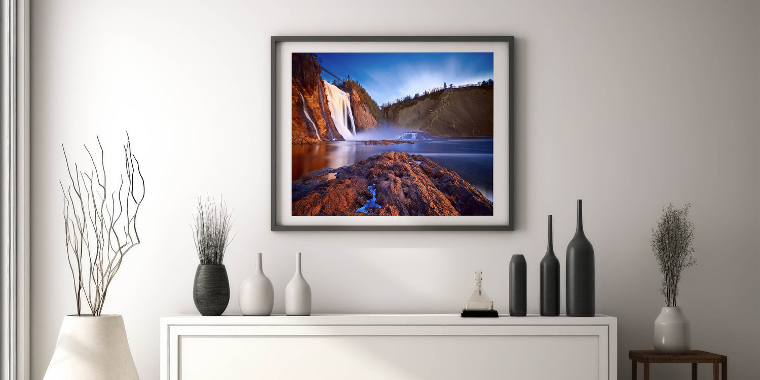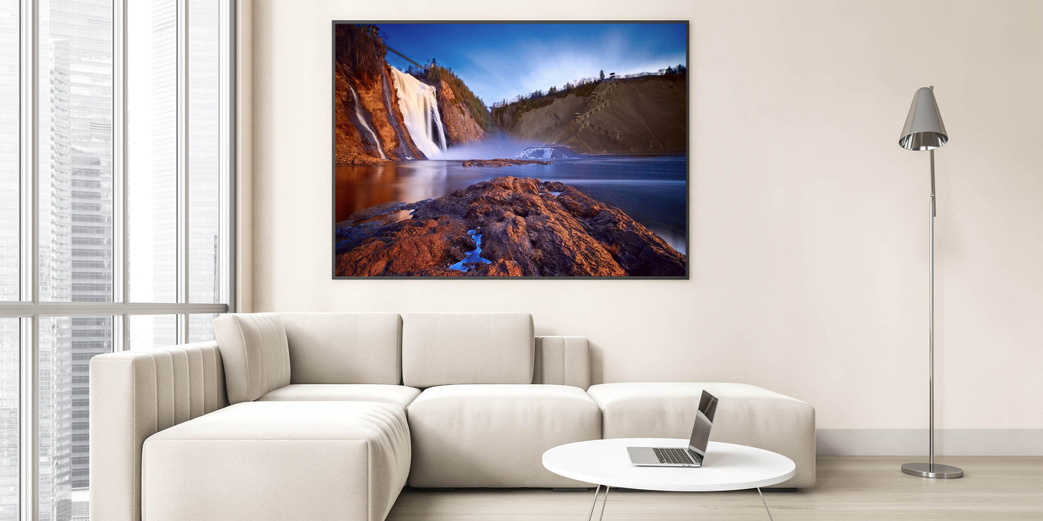 Bring the tranquility of Quebec’s majestic waterfall into your home. This stunning artwork is ideal for creating a peaceful, relaxing atmosphere, whether for yourself or as a unique gift.