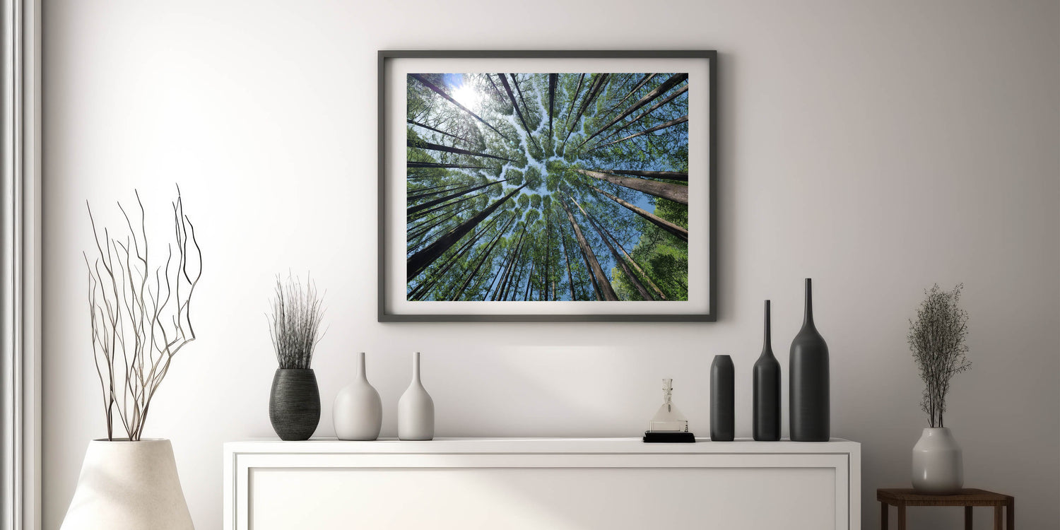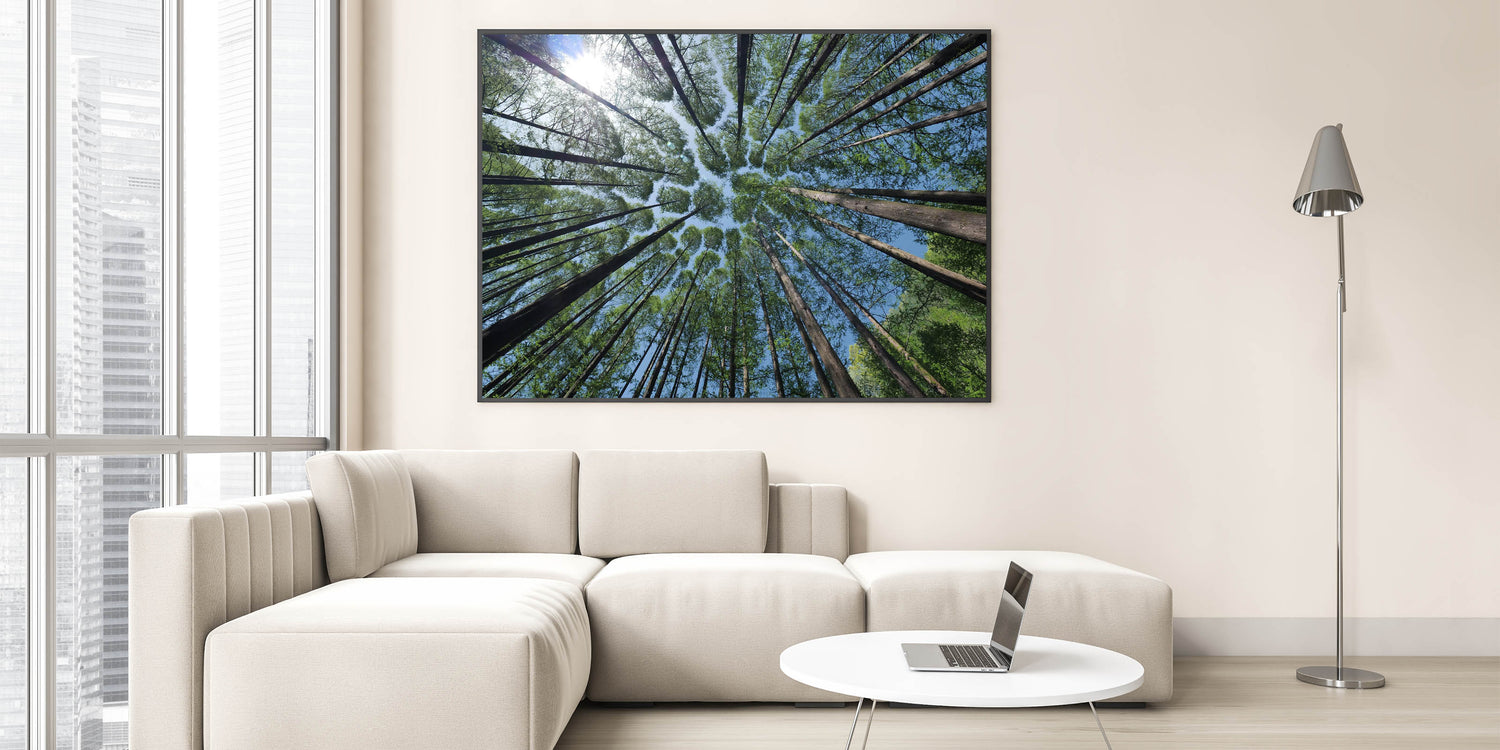 Majestic Skyward Trees – Nature Tree Art on Canvas and Acrylic Glass