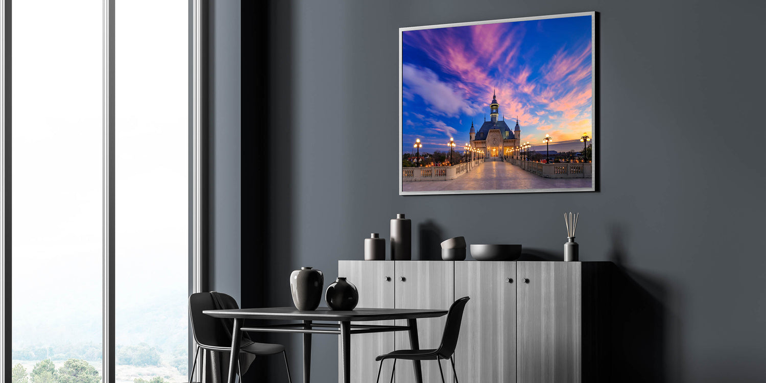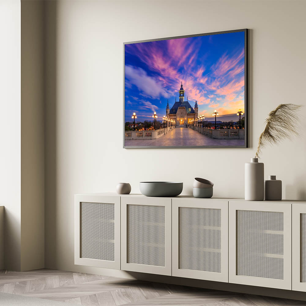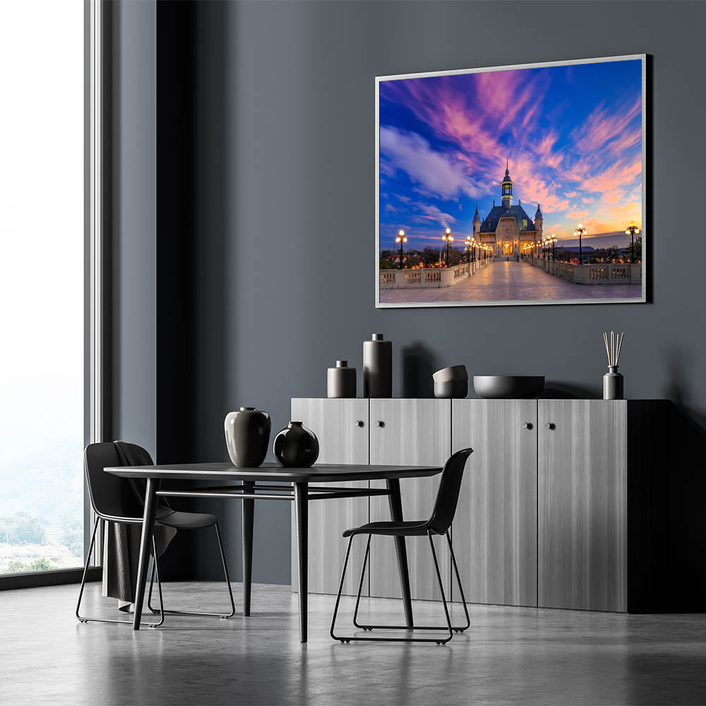 Capture the grandeur of Buenos Aires with our "Buenos Aires Historic Landmark - Majestic Sunset Print." This canvas print features one of the city’s most iconic buildings under a breathtakingly colorful sky, highlighting the elegant architectural details and the romantic ambiance of dusk.
