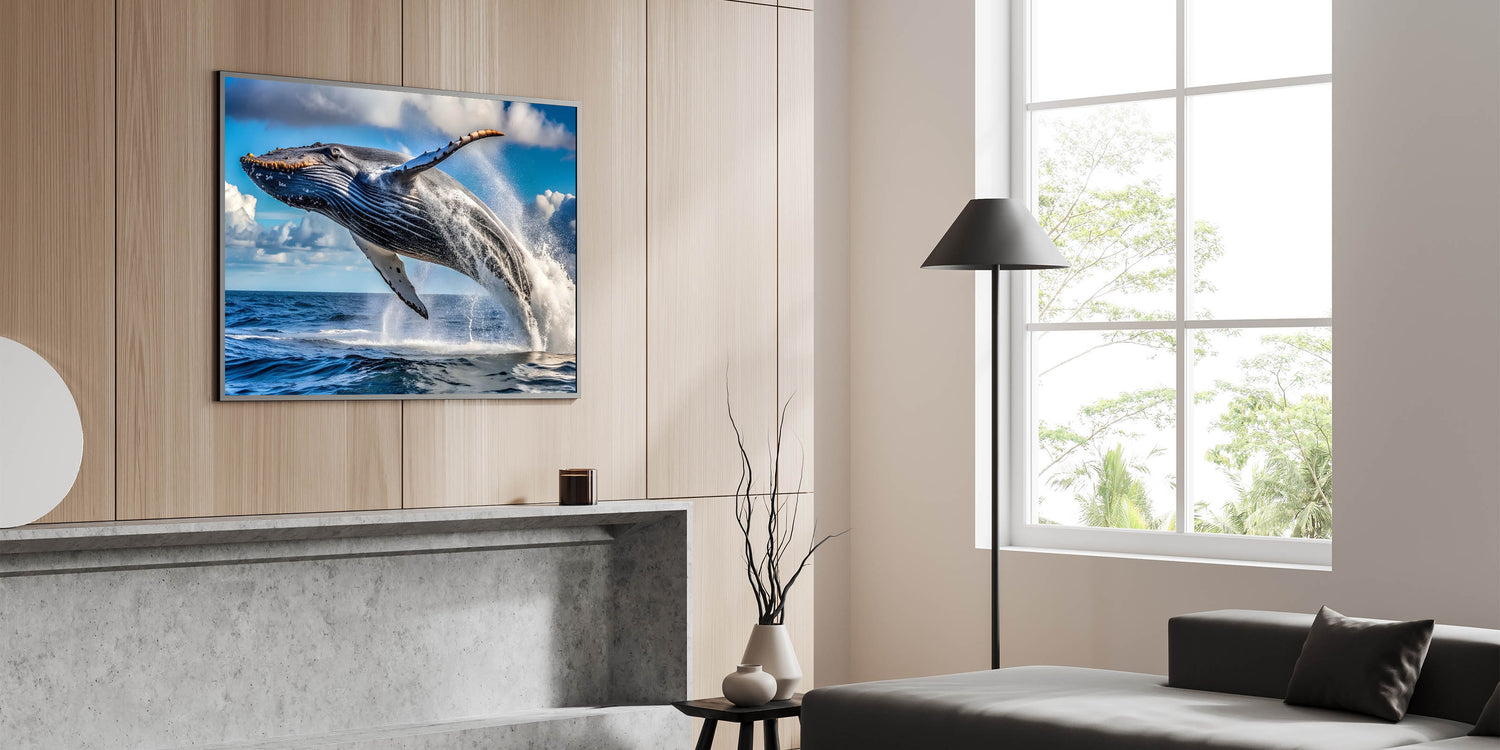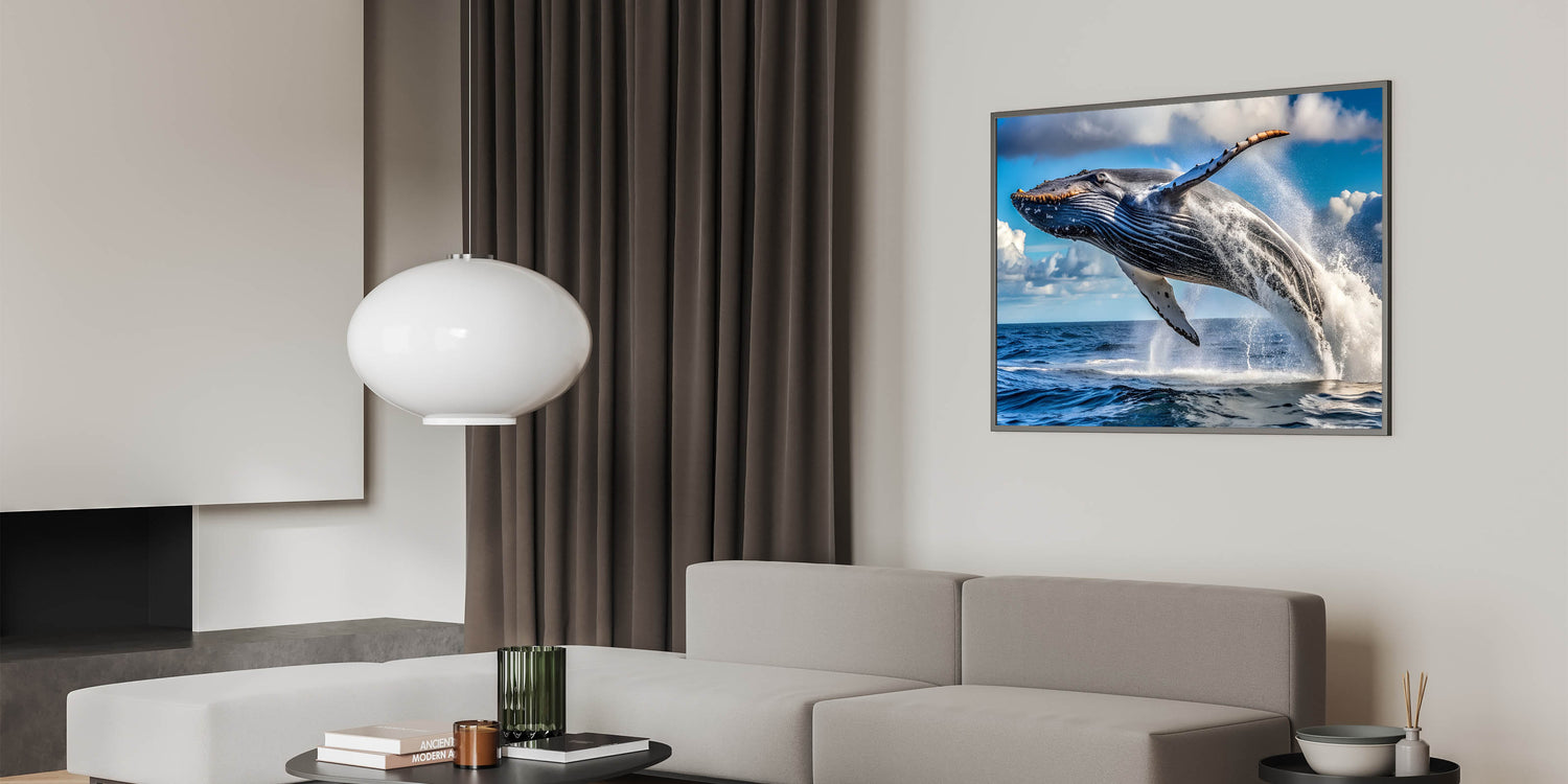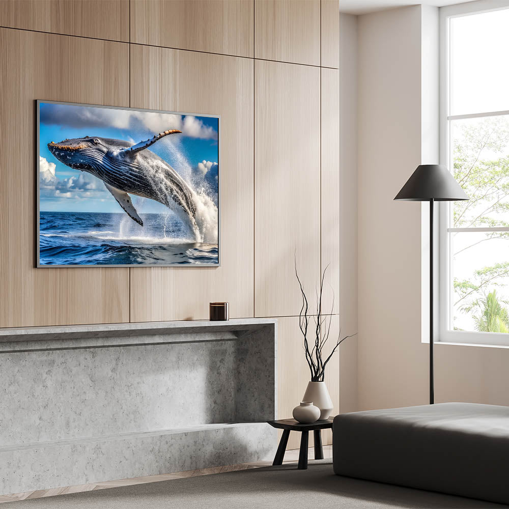 Capture the breathtaking moment of a majestic whale breaching the ocean’s surface with this stunning wall art. The powerful leap of the whale, set against a backdrop of deep blue seas and a cloud-streaked sky, brings the beauty and wonder of marine life into your home. Perfect for wildlife enthusiasts and ocean lovers, this artwork will add an awe-inspiring touch to any space.