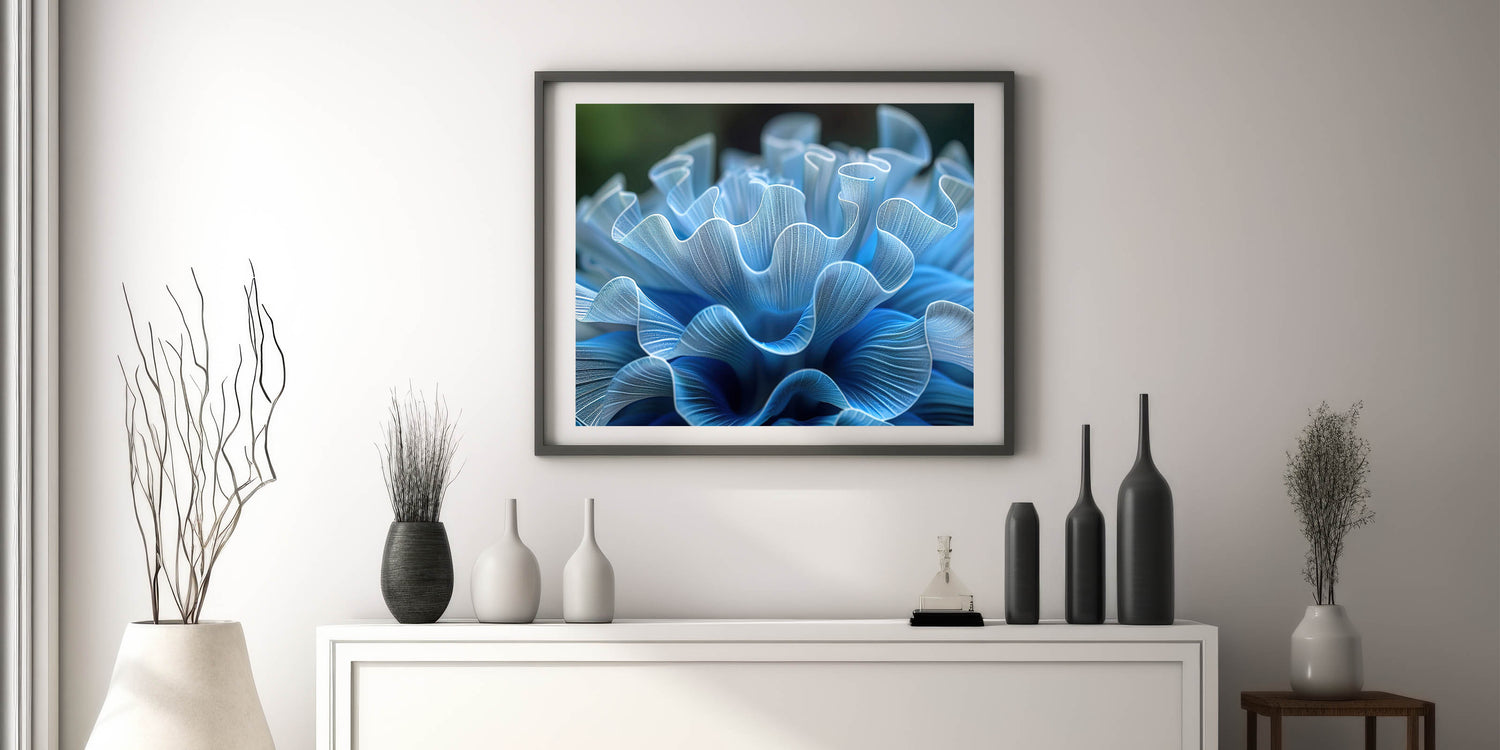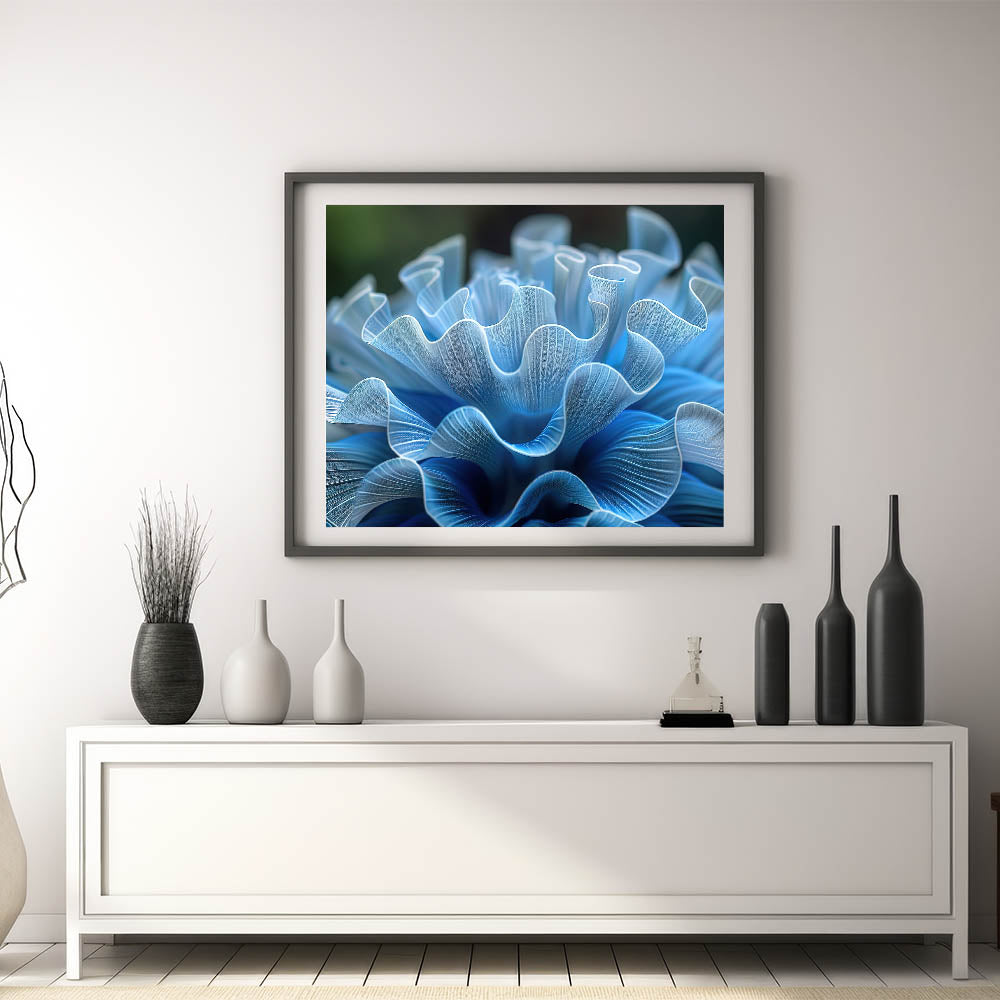 This captivating marine botanical wall art features an exquisite translucent blue coral design, inspired by the delicate waves of underwater flora. The intricate texture and vibrant colors bring the beauty of the ocean into your home, making it an ideal piece for any coastal or contemporary space. This artwork is a stunning representation of the grace and mystery found beneath the waves.