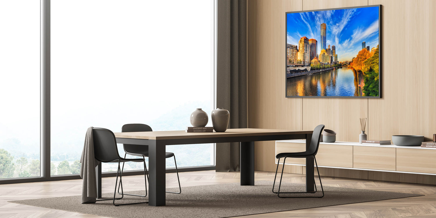 Add a touch of Melbourne’s beauty to your living room, office, or bedroom with this dynamic daytime skyline wall art. Perfect for creating a focal point in any room, this artwork is a testament to Melbourne's vibrant energy and elegance.