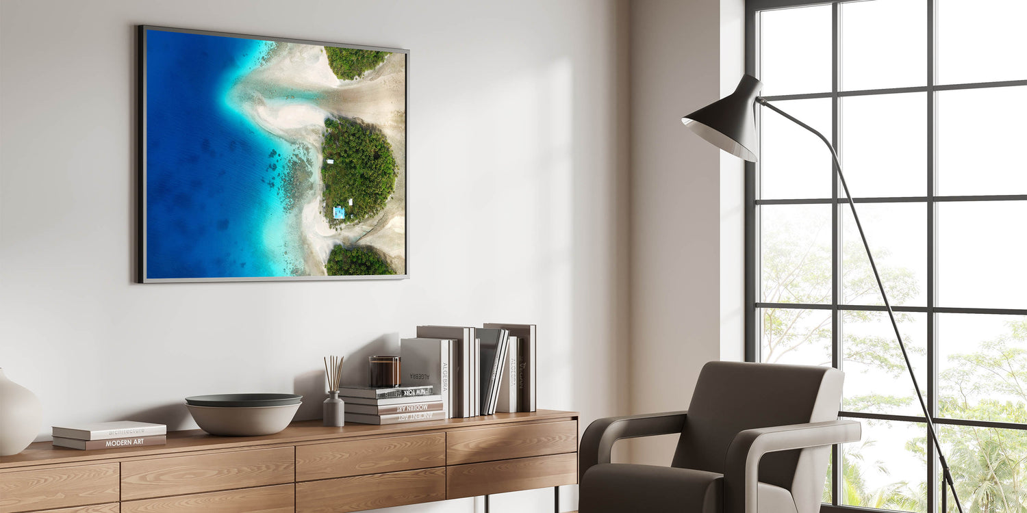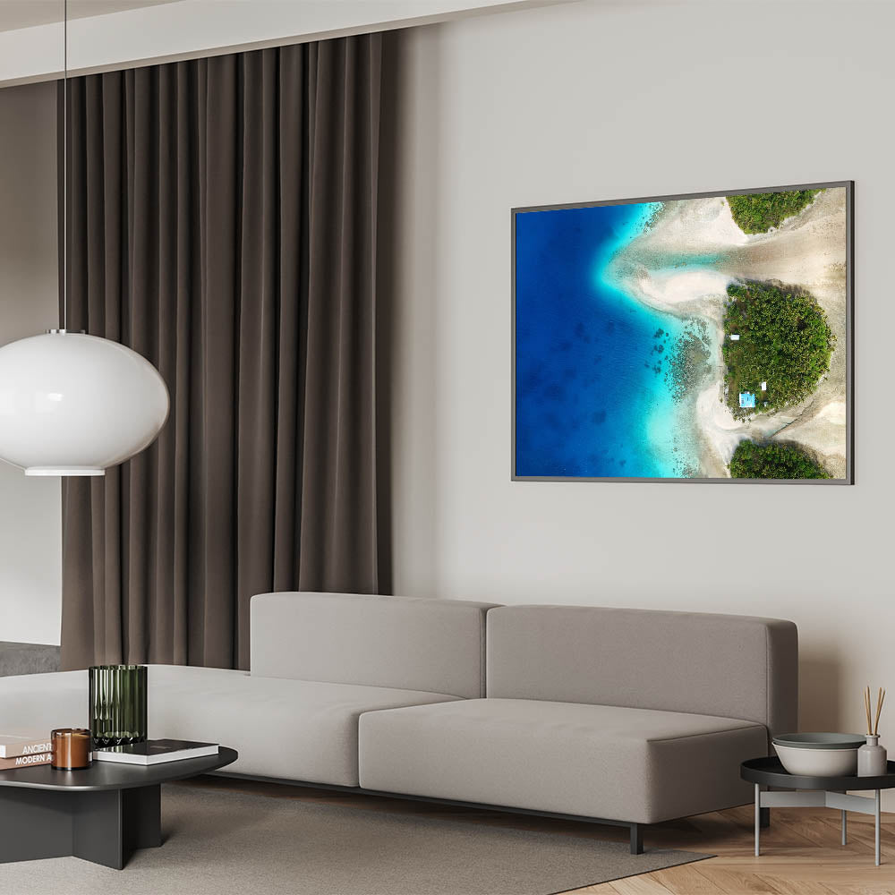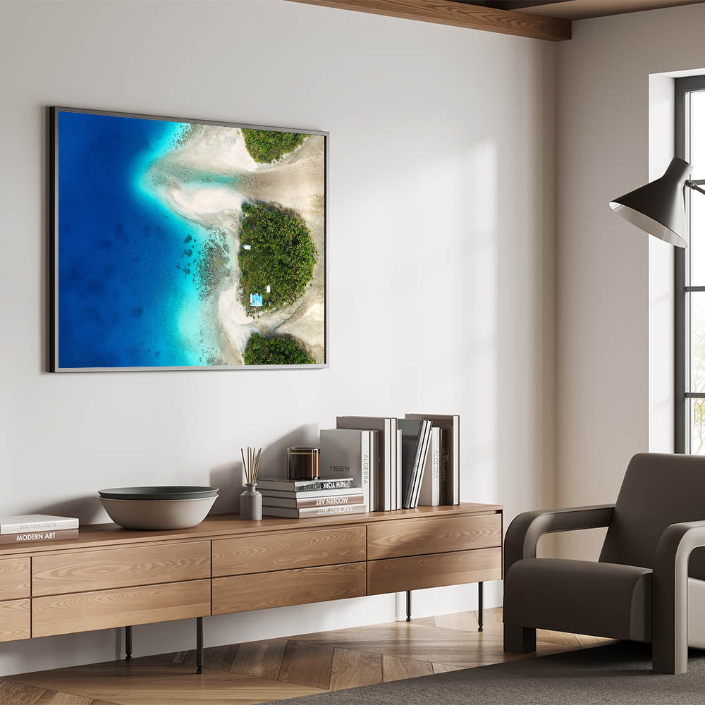 Ideal for those who love the serenity of island landscapes or seek to add a tranquil yet striking element to their interior, this print transports viewers directly to the idyllic shores of Micronesia.