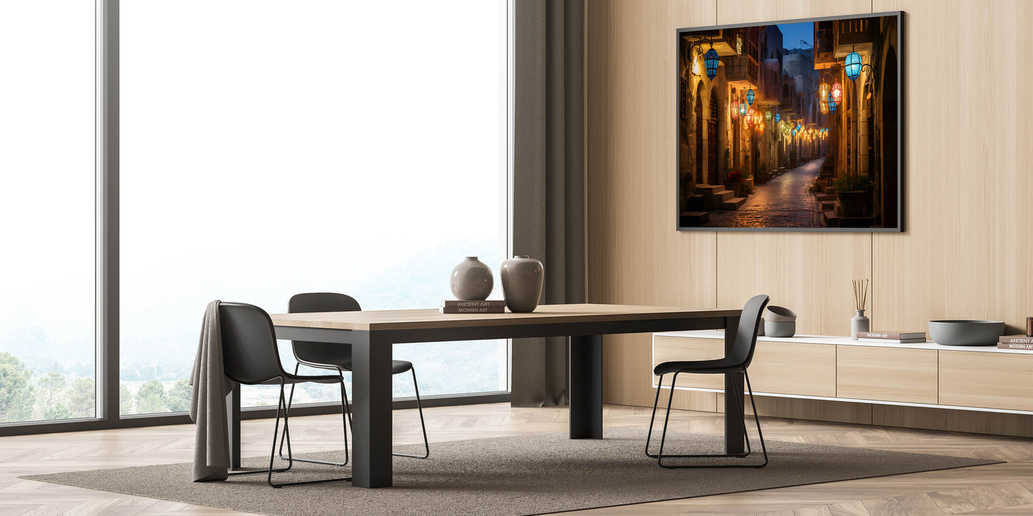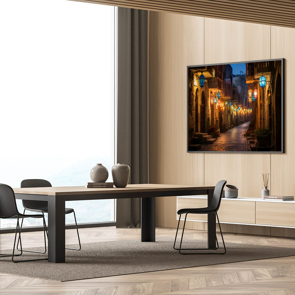 This Middle Eastern lantern street artwork captures the beauty and tranquility of a magical evening in the heart of a traditional city. Add this captivating piece to your collection and experience the warm glow and vibrant culture it brings to your space.