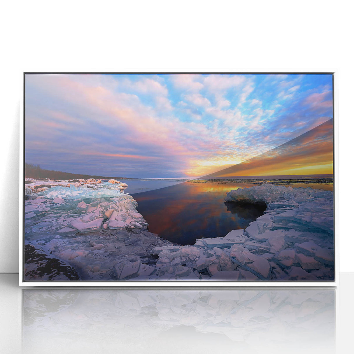 Minnesota Wall Art – Stunning Sunset Over Ice Lake Scene Canvas Print