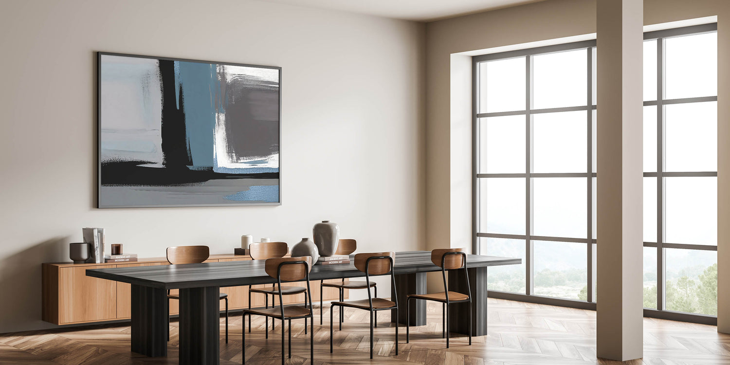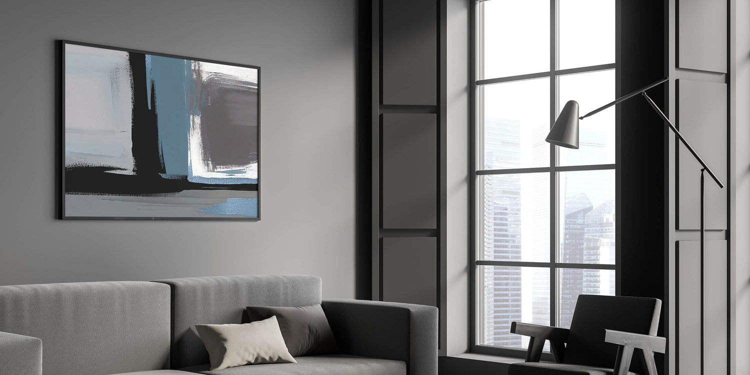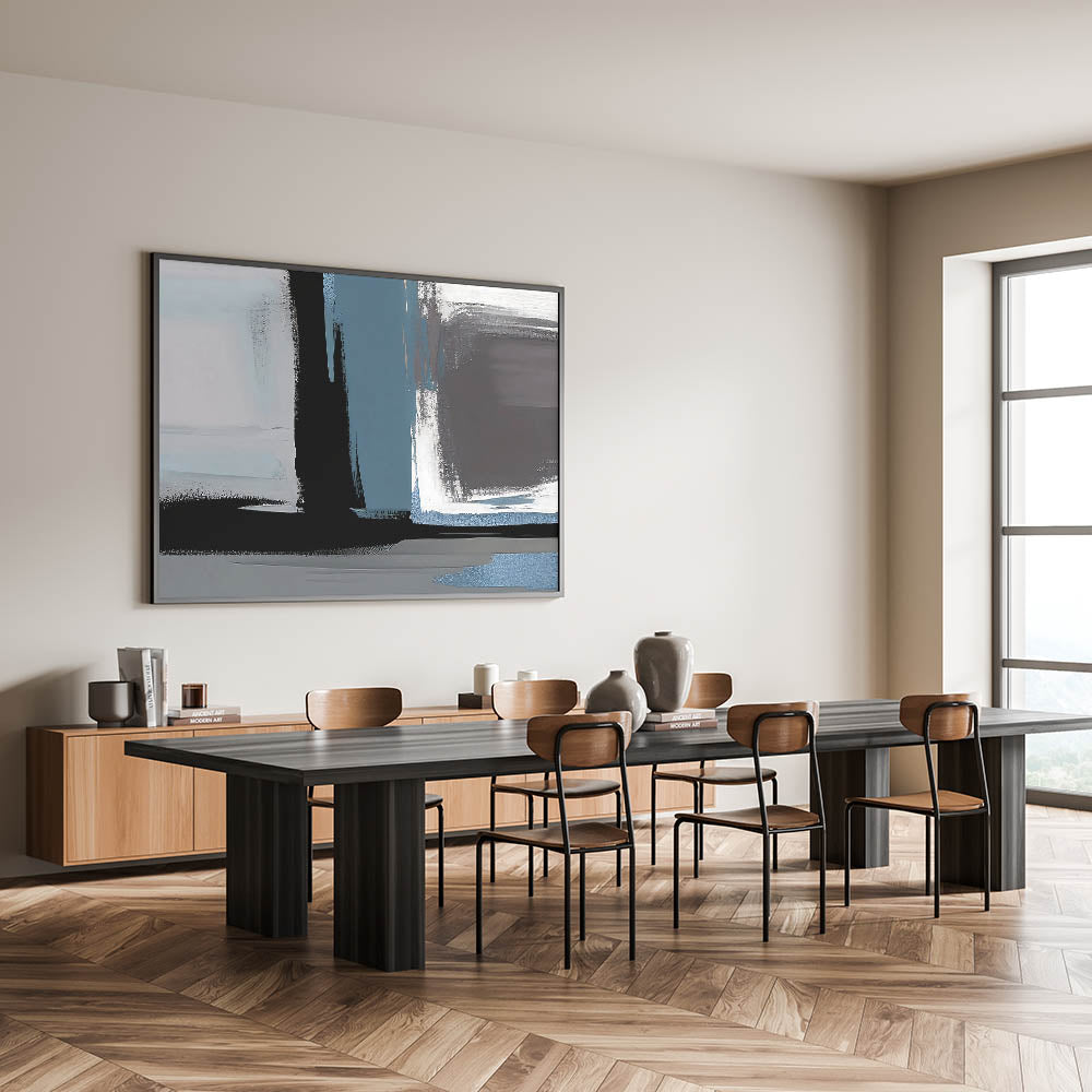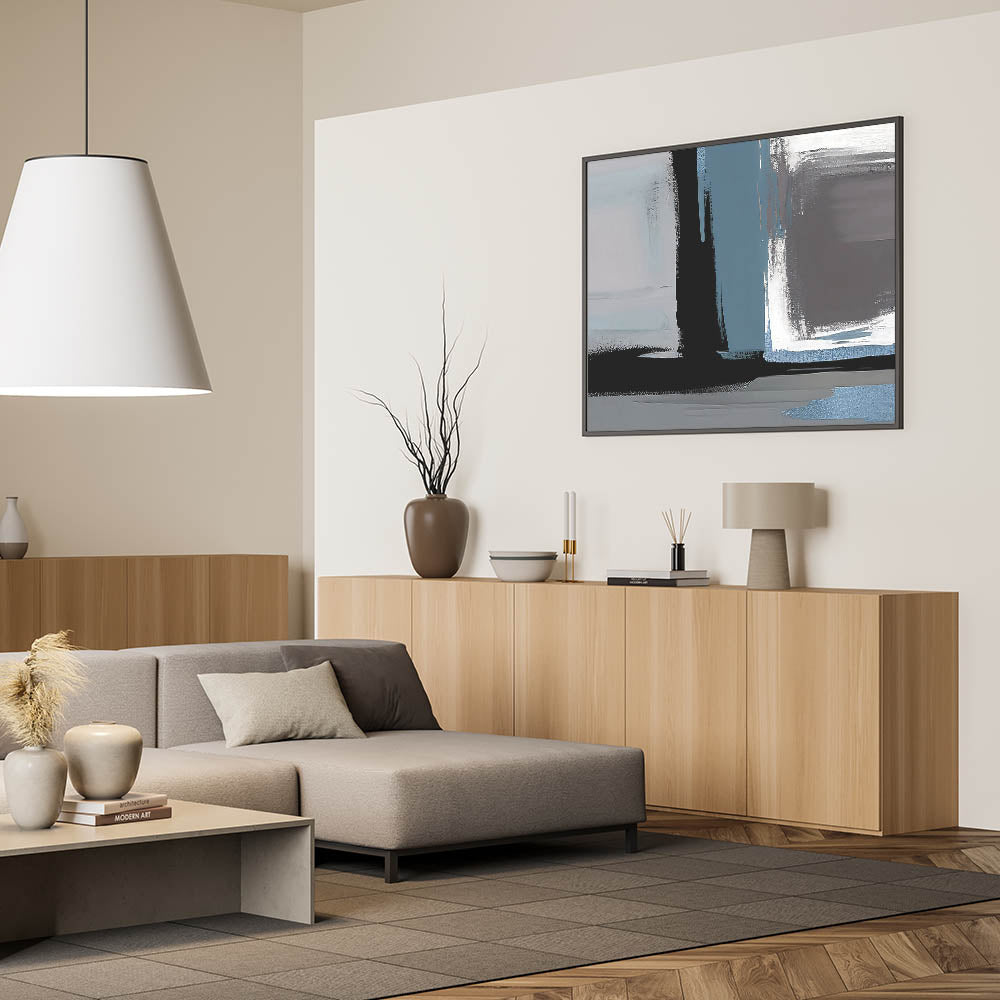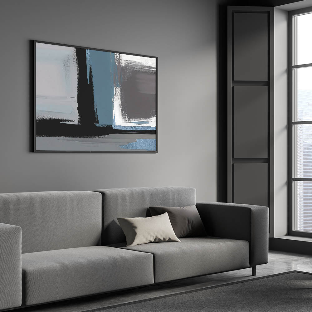 Transform your space with this Modern Abstract Strokes and Lines Art. Featuring a captivating mix of blue, black, and gray tones, this artwork brings a bold and contemporary feel to any room. The dynamic brush strokes and geometric lines create a sense of movement and depth, making it a perfect addition to modern or industrial-inspired interiors.