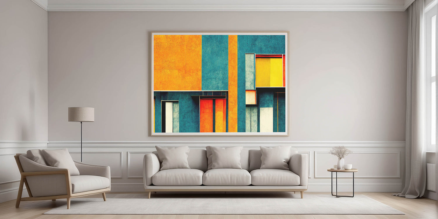 This geometric abstract artwork is more than just a decorative piece; it’s a celebration of color and form. Its bold design and eye-catching composition make it ideal for modern and eclectic interiors. Elevate your décor with this stunning abstract masterpiece.
