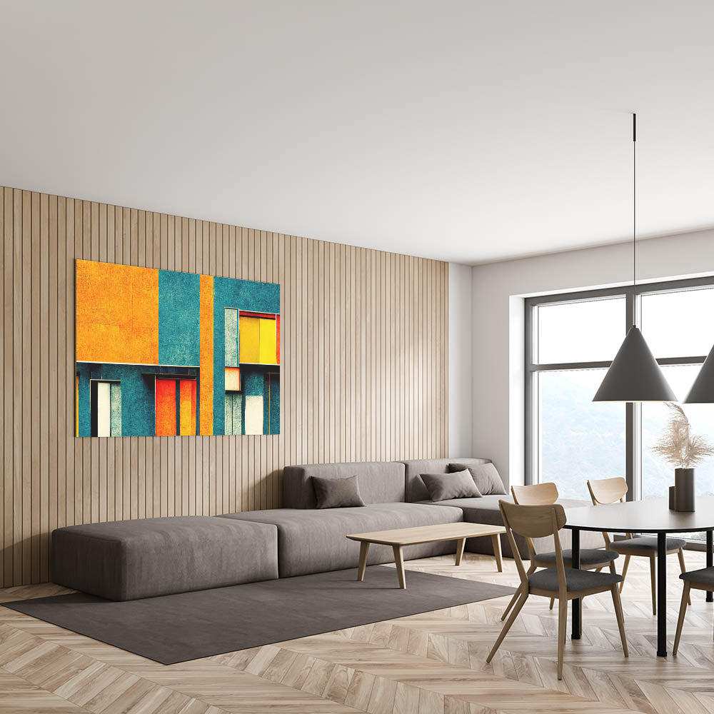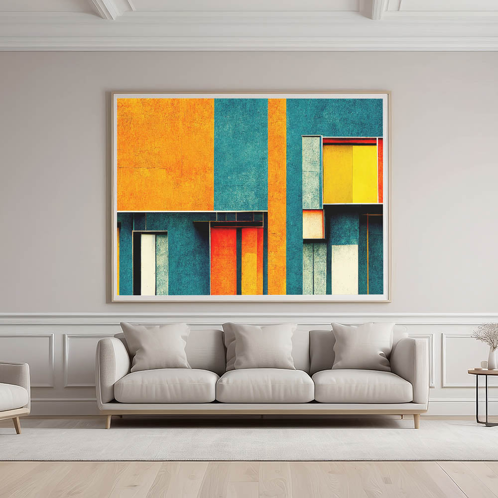 Bring a burst of energy and modern style to your space with this bold abstract wall art. The "Geometric Color Block Canvas Design" features striking blocks of color in shades of orange, blue, yellow, and red. The sharp lines and vibrant palette create a dynamic visual effect that adds a contemporary edge to any room.