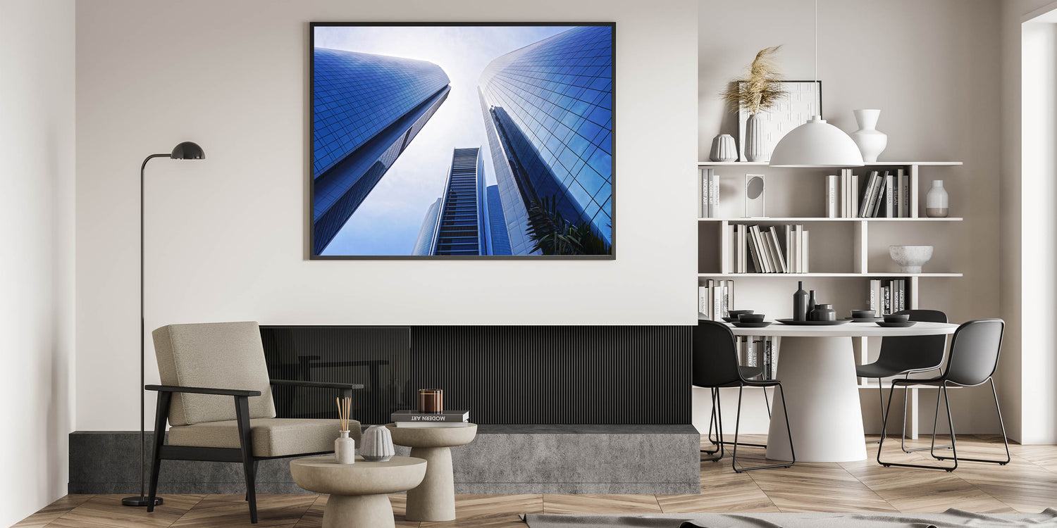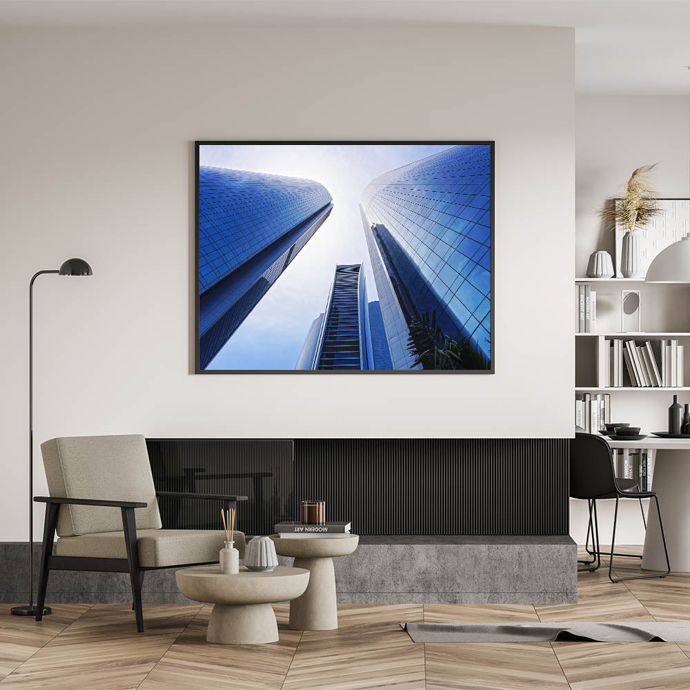 Experience the bold and sleek design of Abu Dhabi’s modern architecture with this breathtaking wall art featuring the iconic Etihad Towers. This stunning Abu Dhabi cityscape captures the awe-inspiring height and geometric elegance of the towers from a unique upward perspective, making it a perfect addition for lovers of contemporary architecture and Middle Eastern décor. Whether for your home or office, this Abu Dhabi art print will add a sophisticated, urban touch to your space.